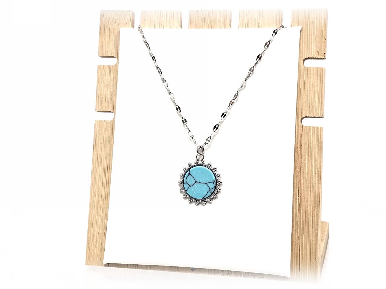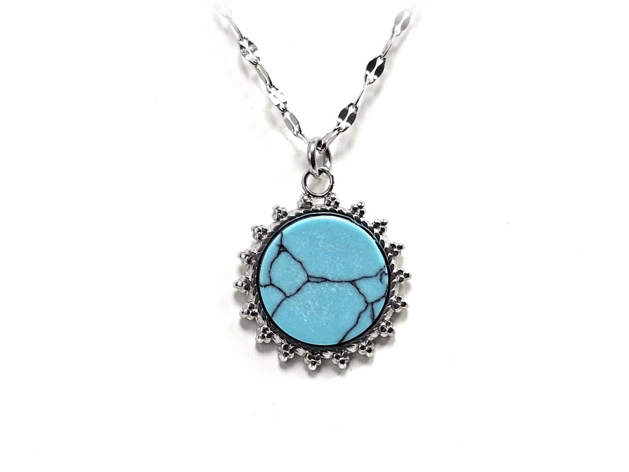Κολιέ Πέτρα ατσάλι 316L, αλυσίδα με τυρκουάζ σε χρώμα Ασημί