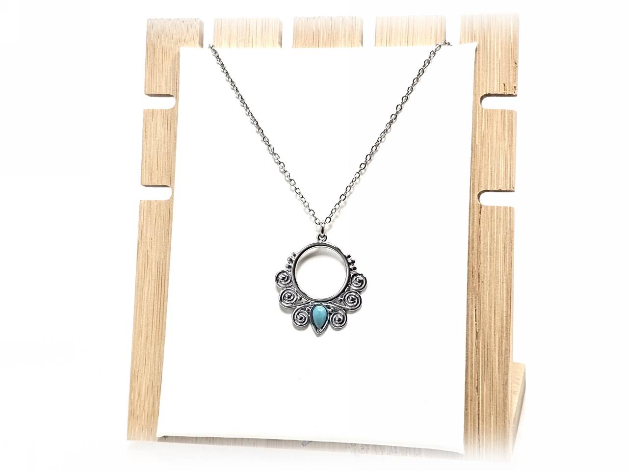 Κολιέ Πέτρα ατσάλι 316L, αλυσίδα με τυρκουάζ σε χρώμα Ασημί