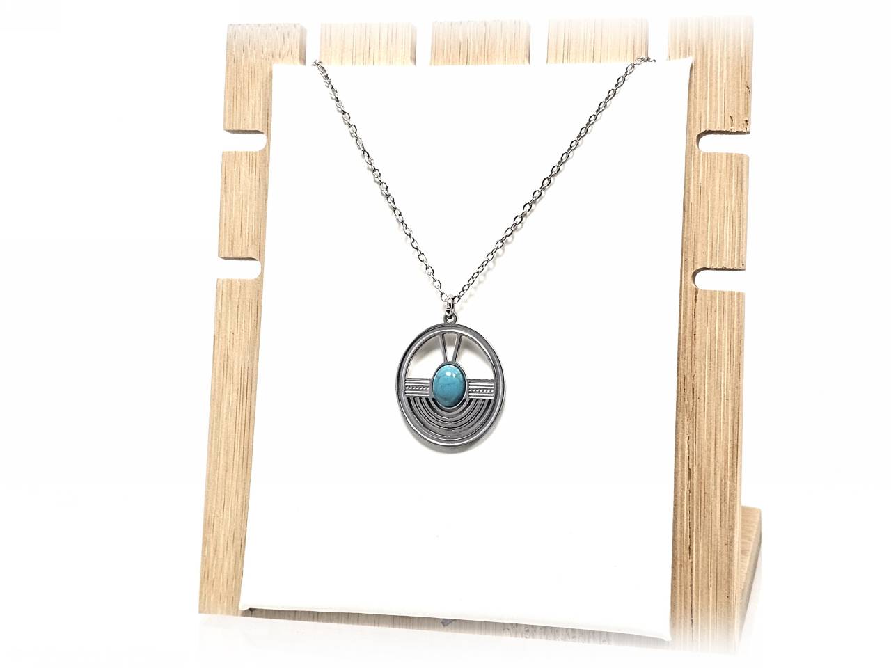 Κολιέ Πέτρα ατσάλι 316L, αλυσίδα με τυρκουάζ σε χρώμα Ασημί