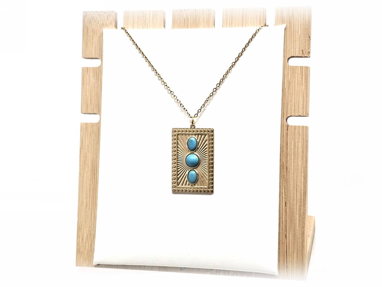 Κολιέ Πέτρα ατσάλι 316L, αλυσίδα με τυρκουάζ σε χρώμα Χρυσαφί