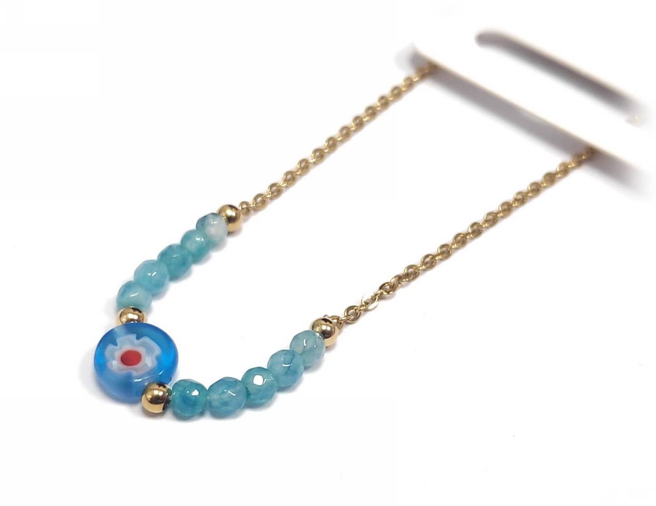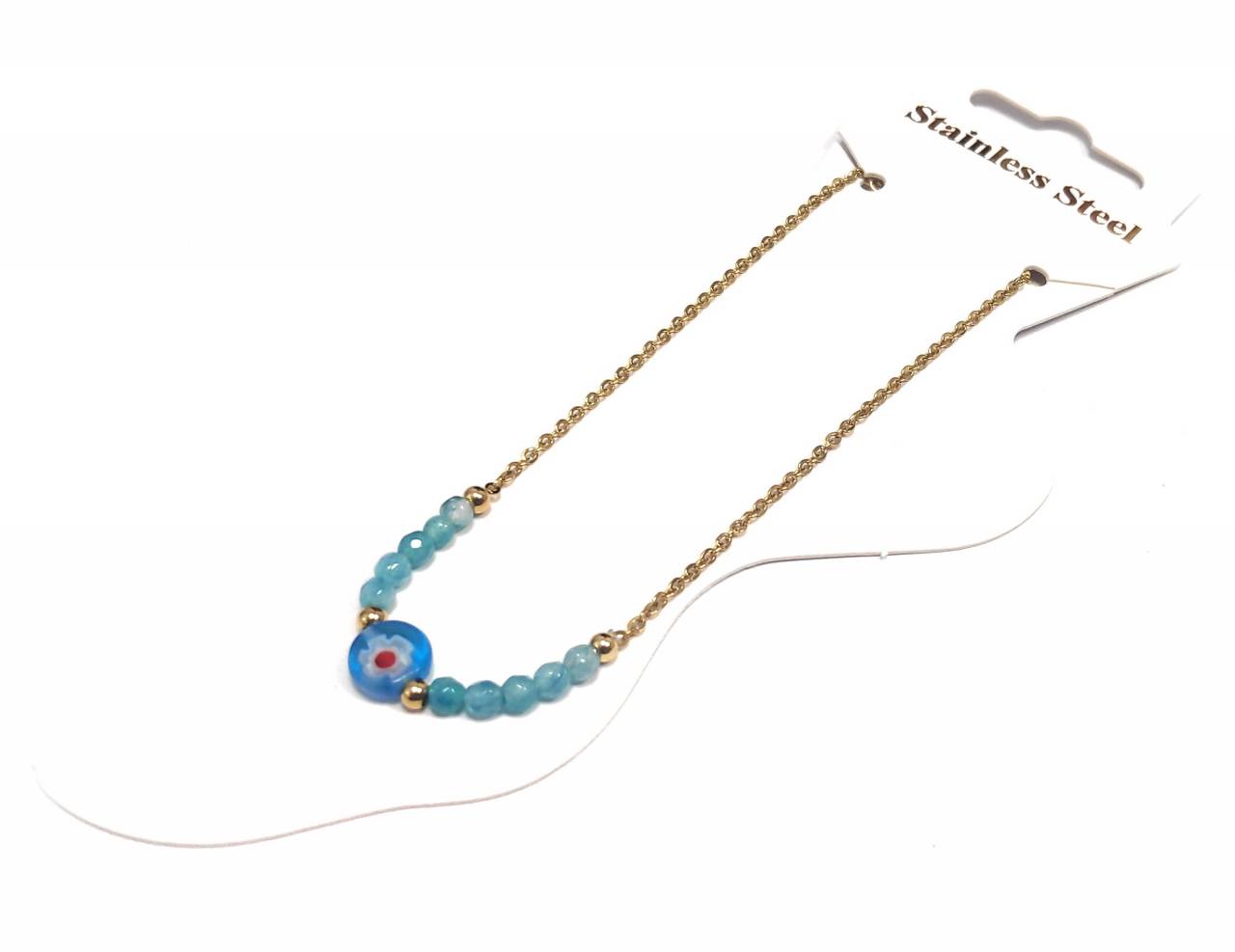 Βραχιόλι Ποδιού Ατσάλι 316L, αλυσίδα με γαλάζιες χάντρες σε χρώμα Χρυσαφί