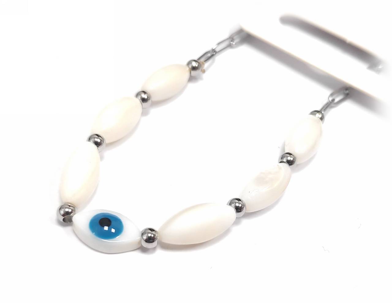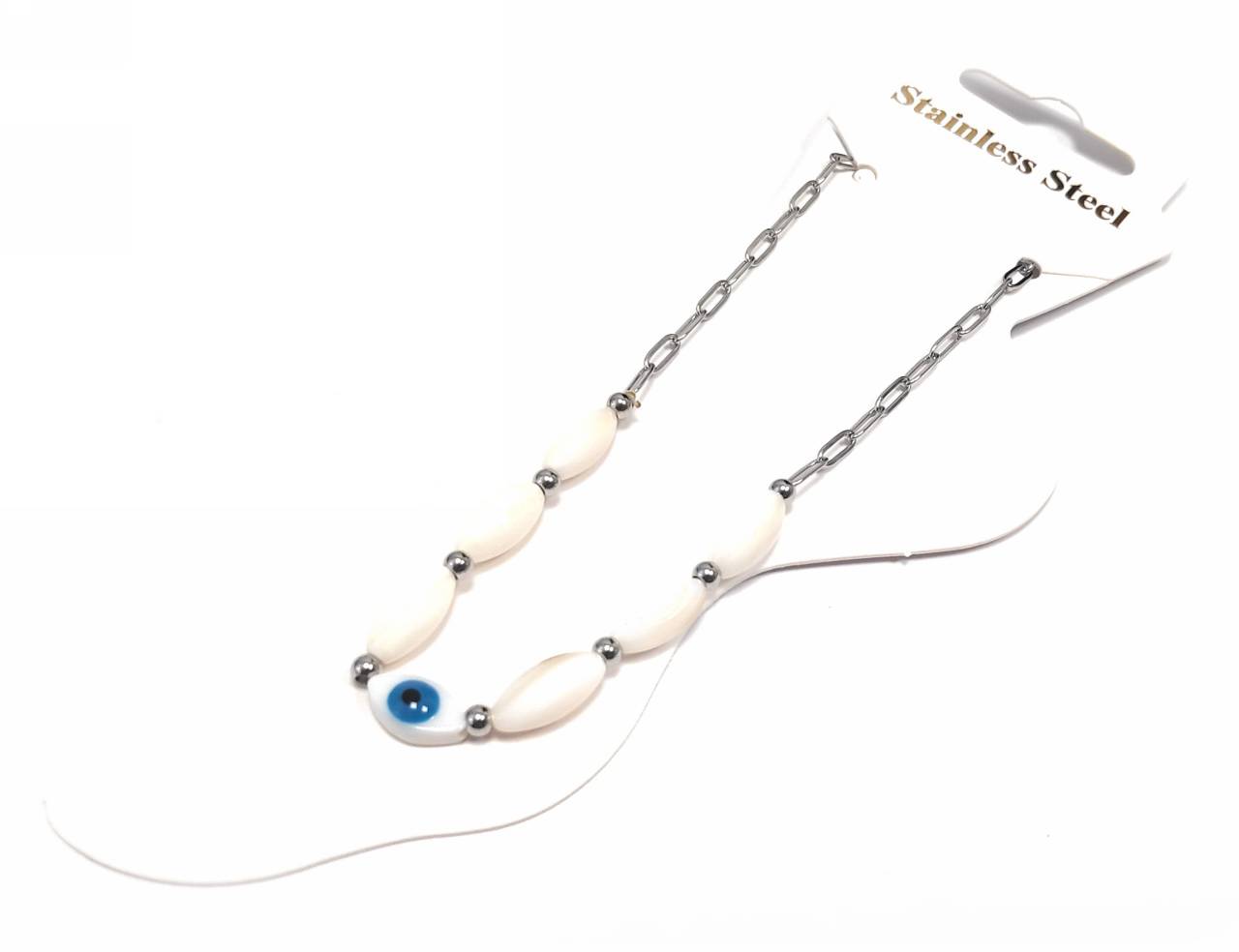Βραχιόλι Ποδιού Ατσάλι 316L, αλυσίδα με μάτι και μαργαριτάρια σε χρώμα Ασημί