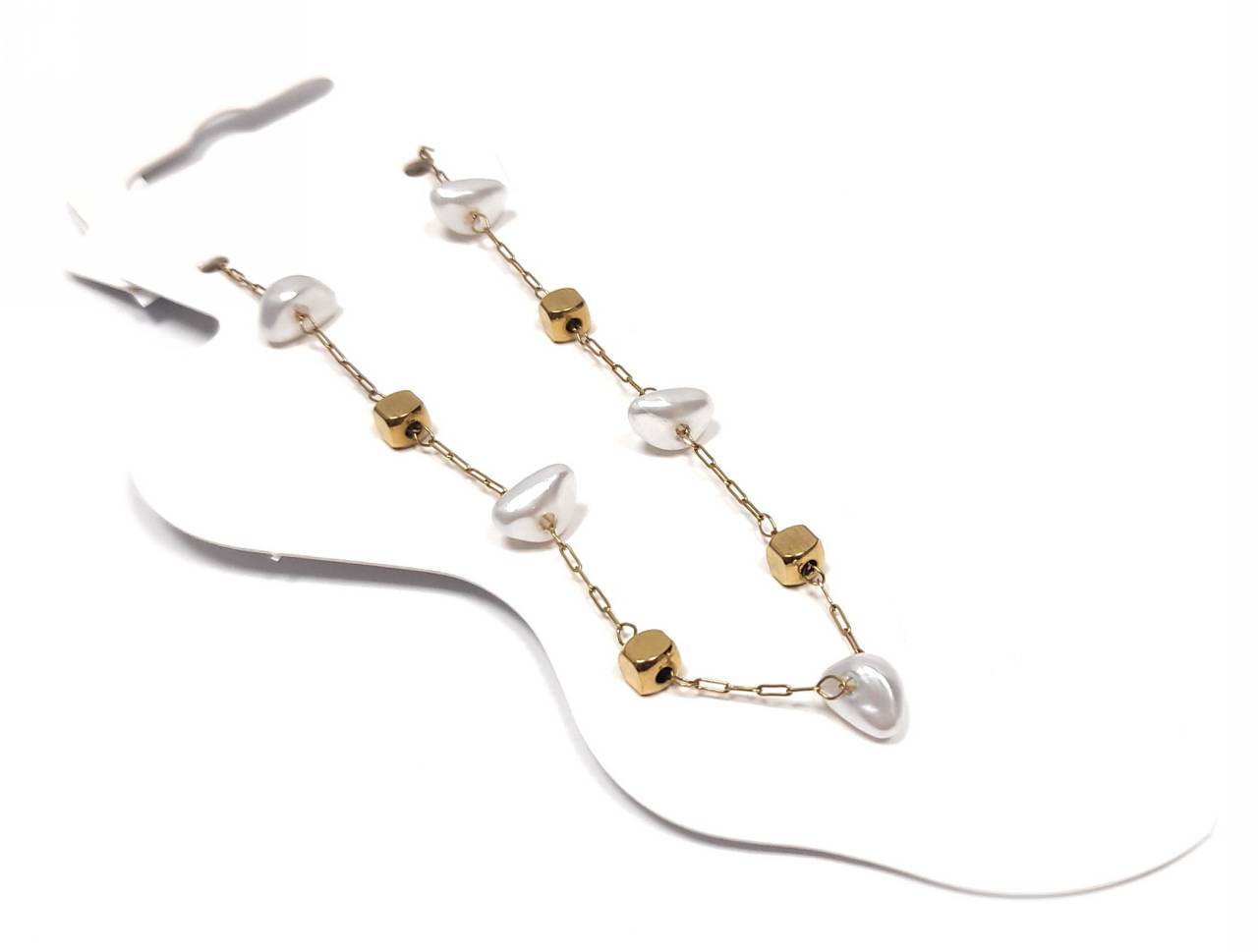 Βραχιόλι Ποδιού Ατσάλι 316L, αλυσίδα με μαργαριτάτι σε χρώμα Χρυσαφί