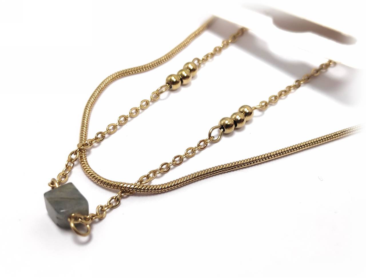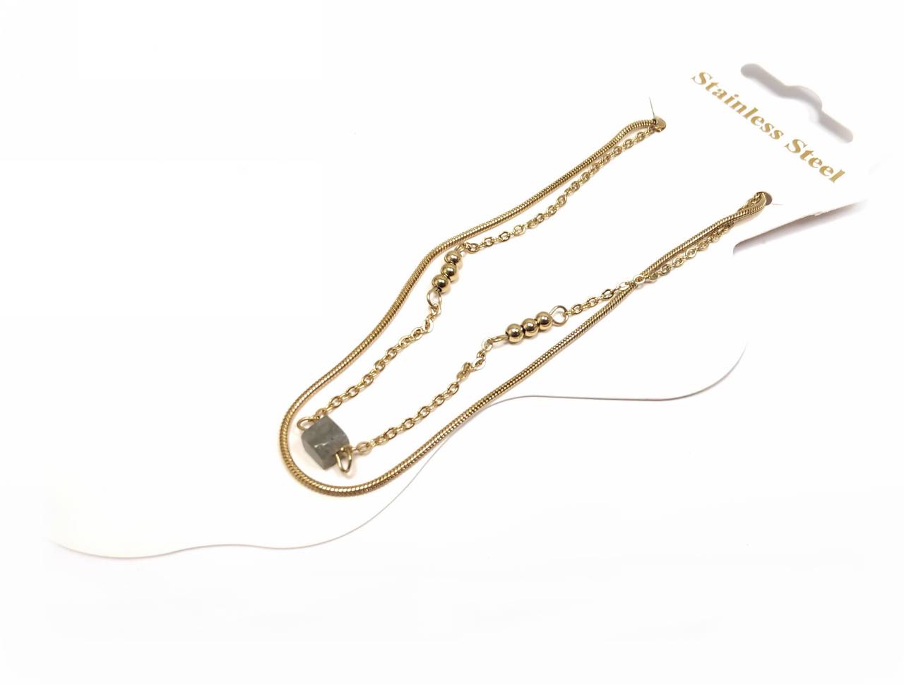 Βραχιόλι Ποδιού Ατσάλι 316L, διπλη αλυσίδα σε χρώμα Χρυσαφί