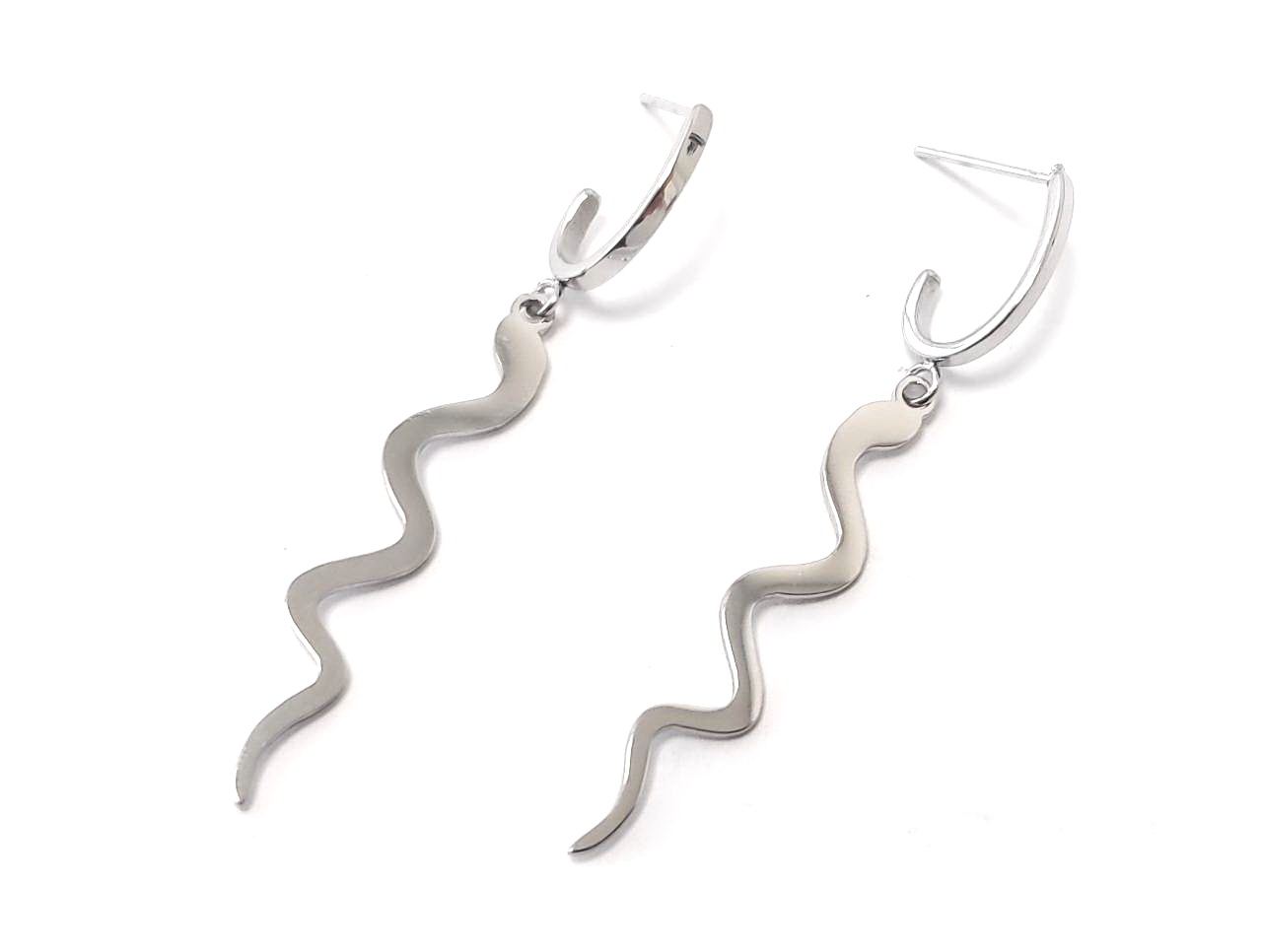 Σκουλαρίκια Ατσάλι 316L, κρικάκι και φίδι σε χρώμα Ασημί