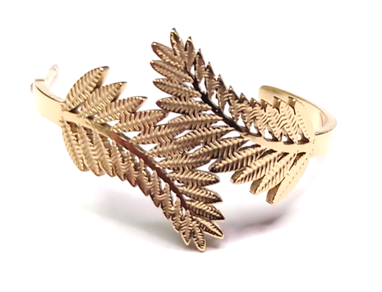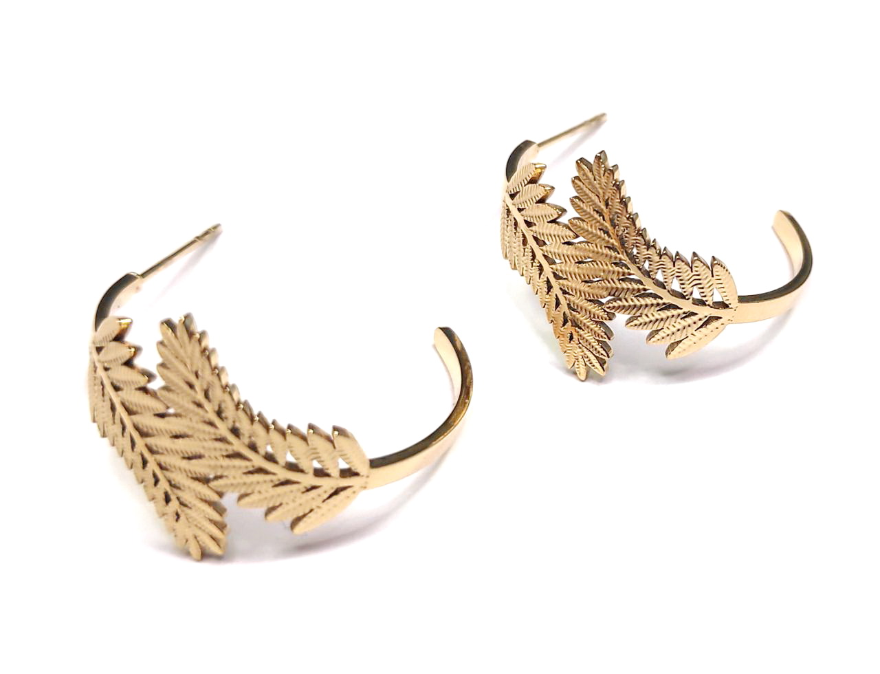 Σκουλαρίκια Ατσάλι 316L κρίκος με φύλλα σε χρώμα Χρυσαφί, Διάμετρος 2cm
