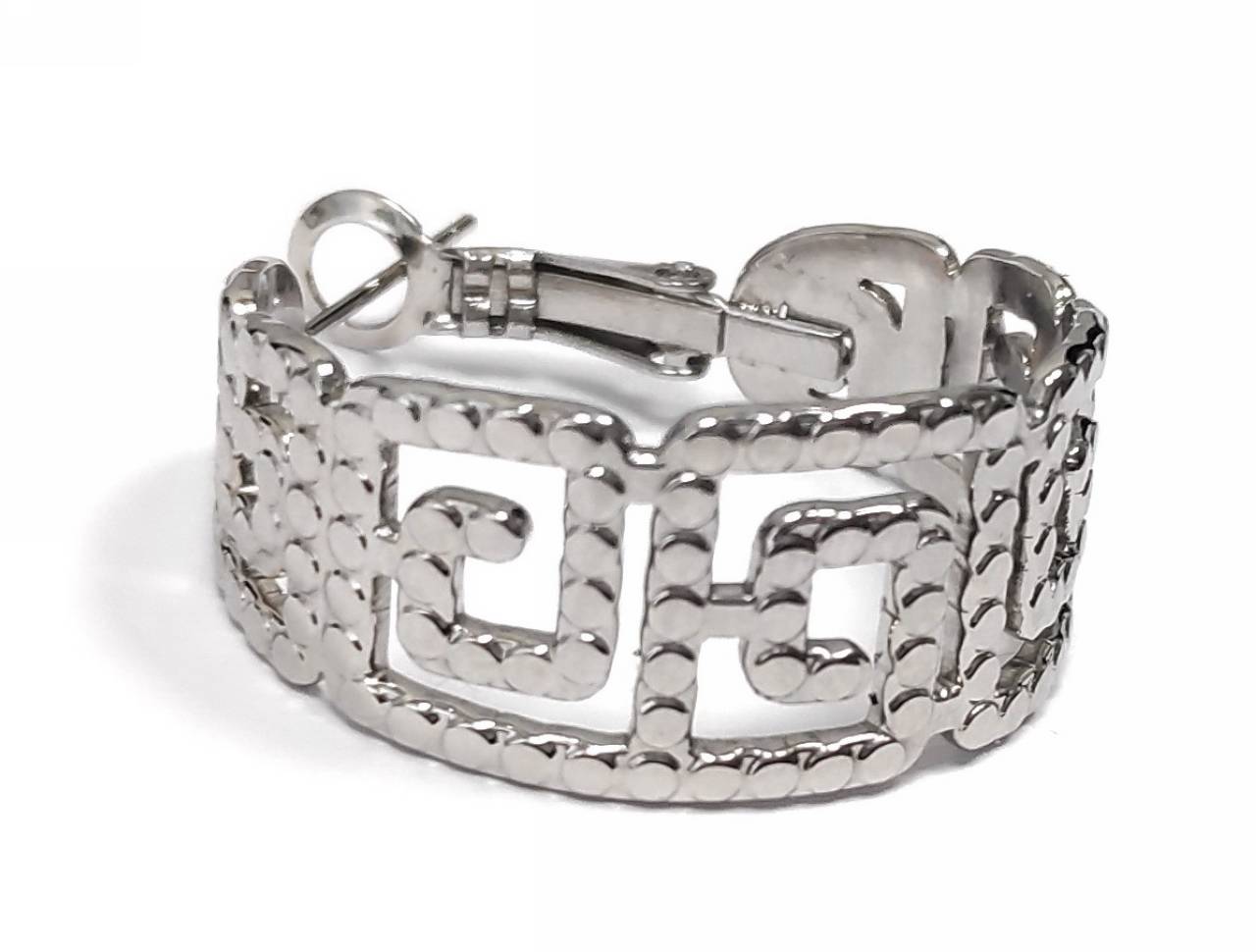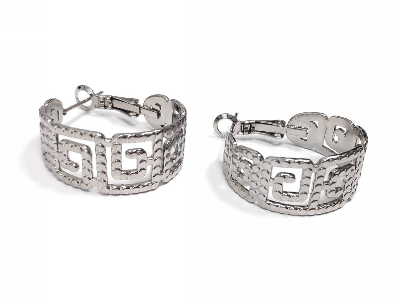 Σκουλαρίκια Ατσάλι 316L, κρίκος με μαίανδρο σε χρώμα Ασημί, Διάμετρος 2,5cm