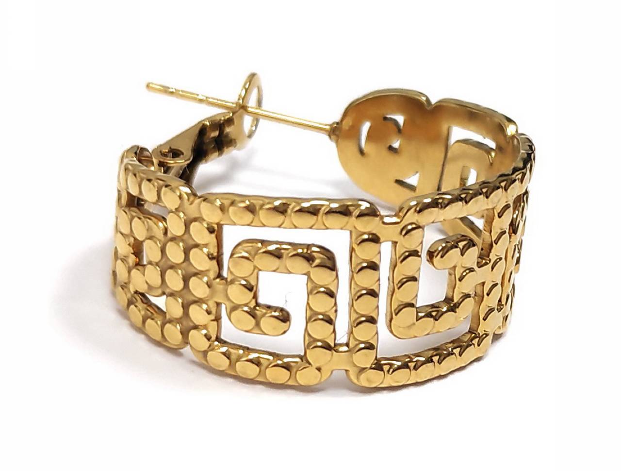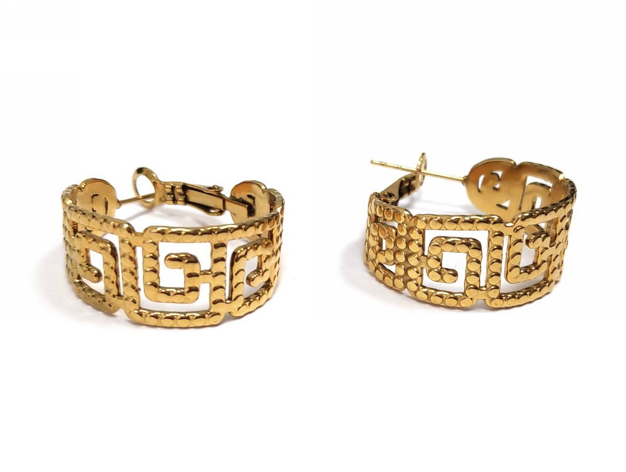 Σκουλαρίκια Ατσάλι 316L, κρίκος με μαίανδρο σε χρώμα Χρυσαφί, Διάμετρος 2,5cm