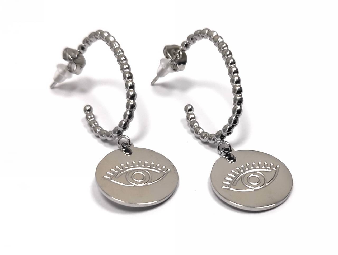 Σκουλαρίκια Ατσάλι 316L, με μάτι σε χρώμα Ασημί
