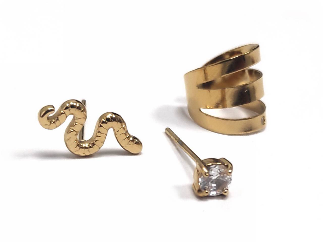 Σκουλαρίκια Ατσάλι 316L, καρτέλα (cuff, στρας, φίδι) σε χρώμα Χρυσαφί