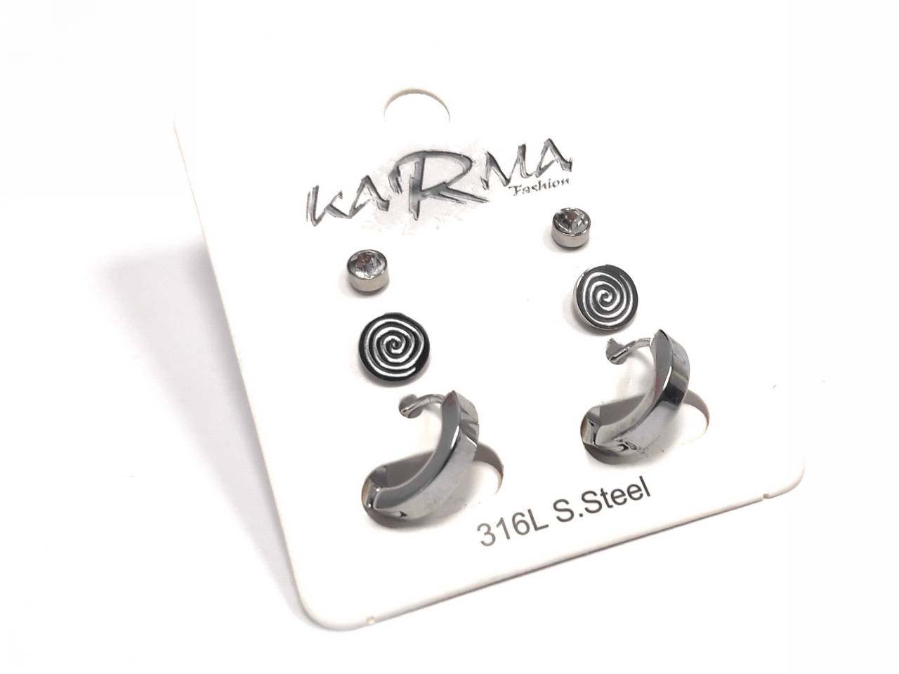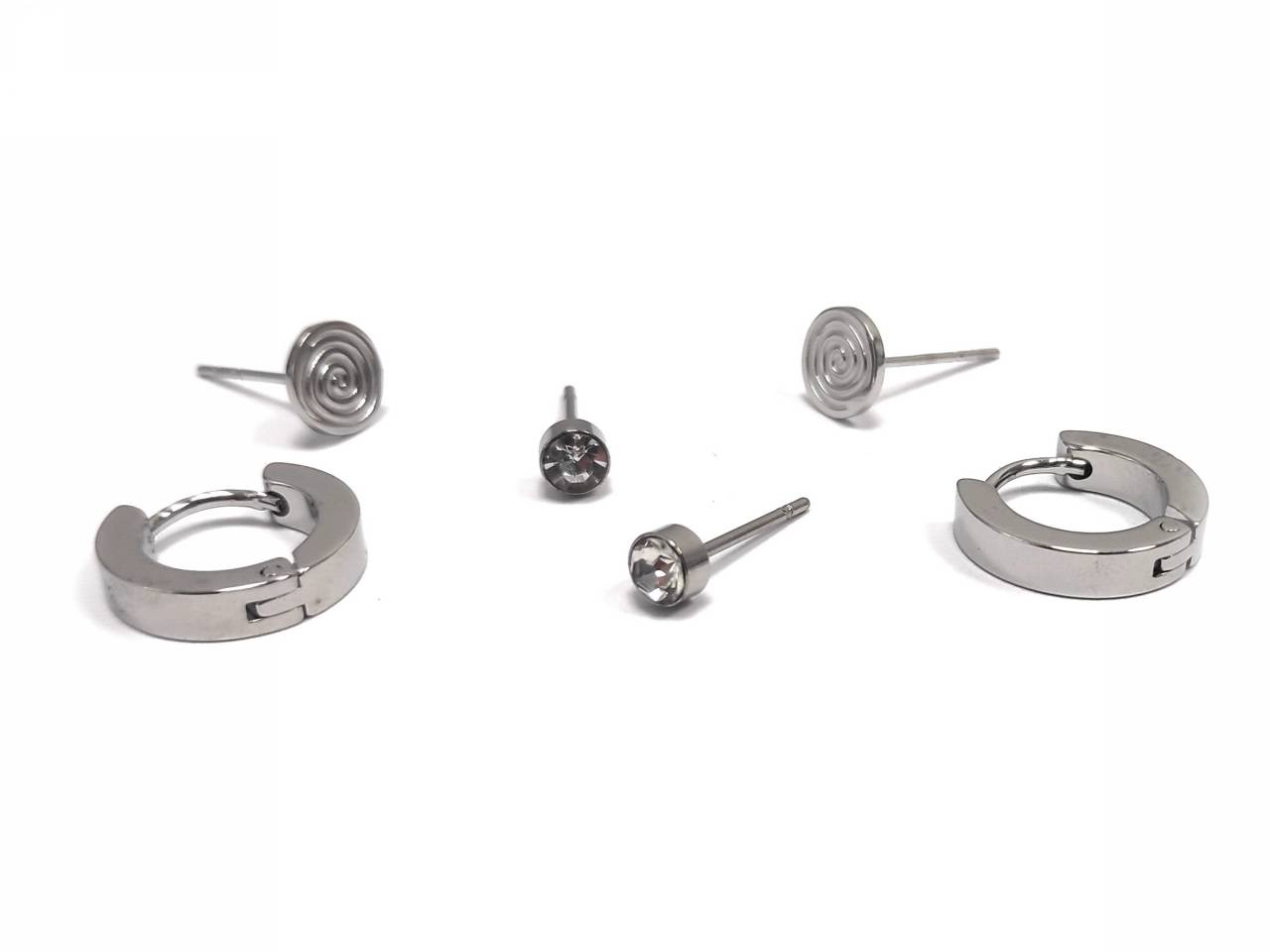 Σκουλαρίκια Ατσάλι 316L, καρτέλα (κρικάκια, στρας, σπείρες) σε χρώμα Ασημί