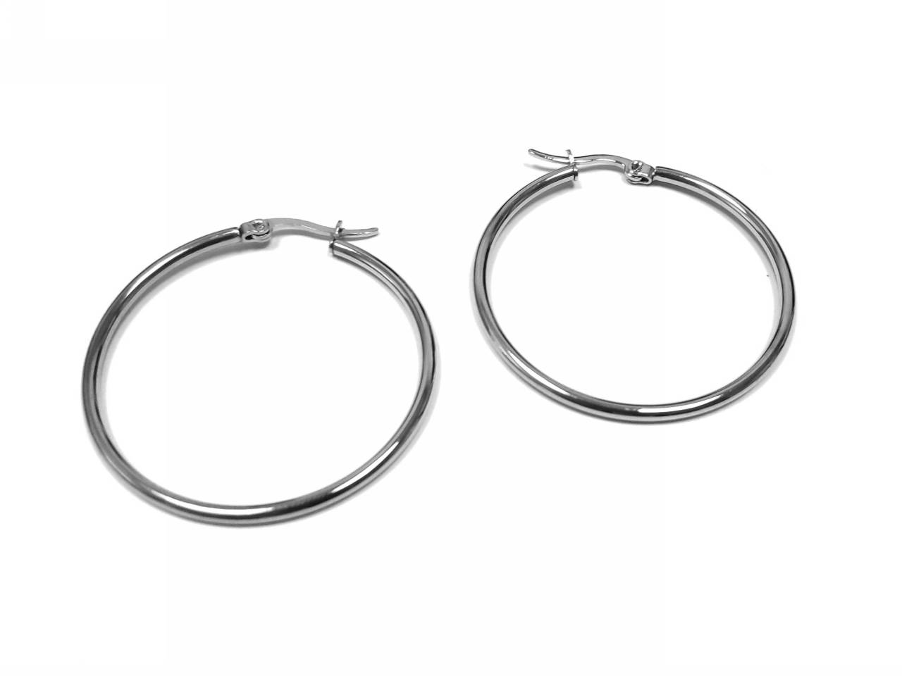 Σκουλαρίκια Ατσάλι 304, κρίκος σε χρώμα Ασημί, Διάμετρος 40mm, Πάχος 3mm