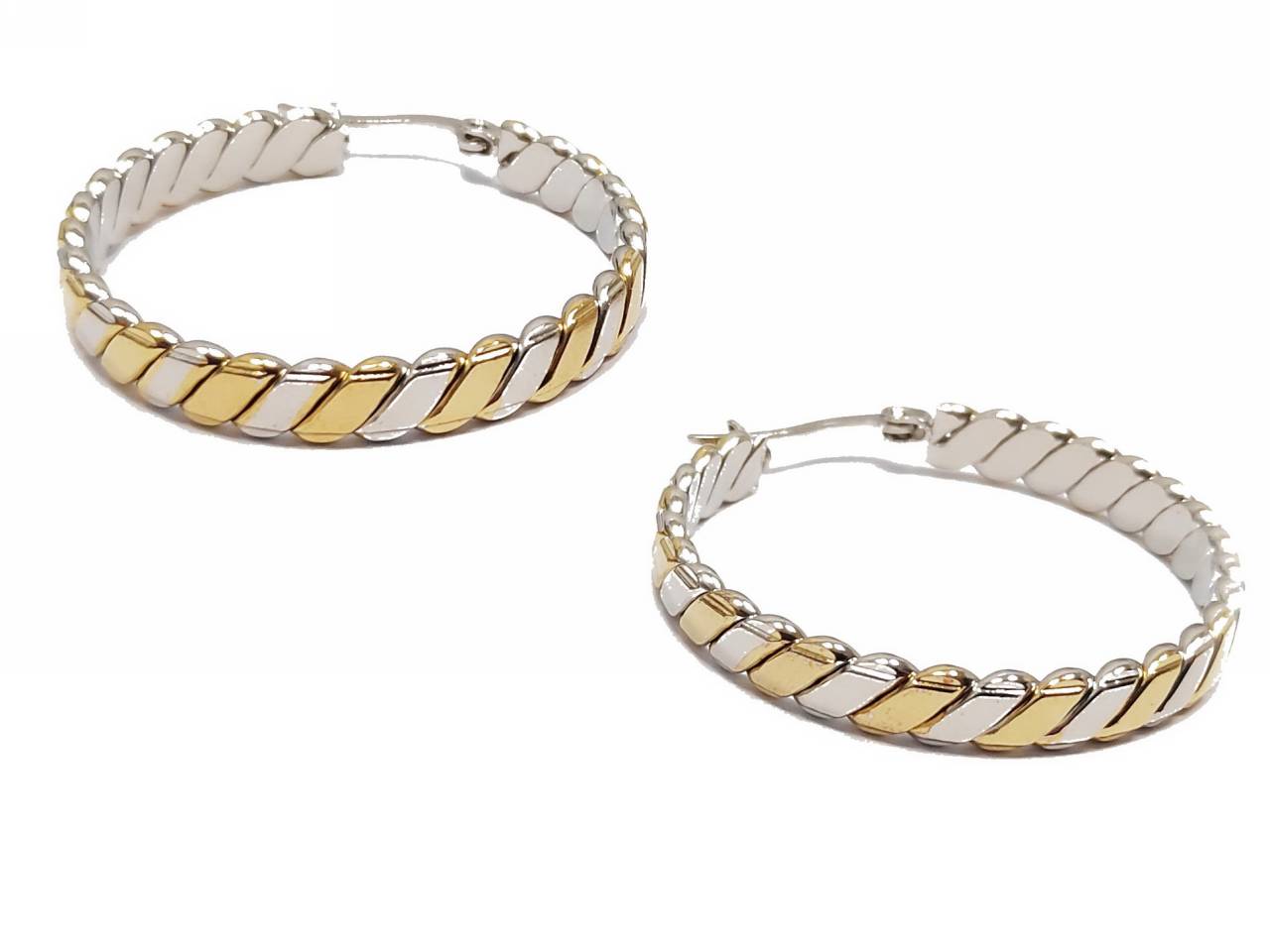 Σκουλαρίκια Ατσάλι 304, κρίκος σε χρώμα Ασημί και χρώμα Χρυσαφί, Διάμετρος 3cm