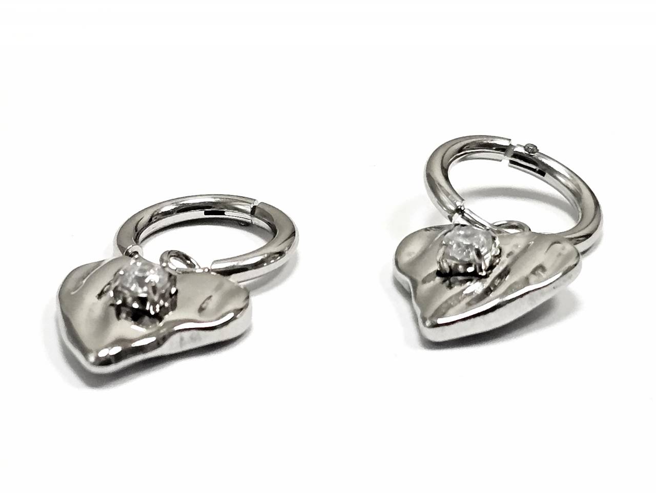 Σκουλαρίκια Ατσάλι 316L, κρίκος καρδιά με στρας σε χρώμα Ασημί