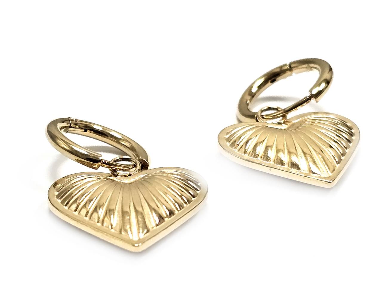 Σκουλαρίκια Ατσάλι 316L, κρίκος με καρδιά σε χρώμα Χρυσαφί