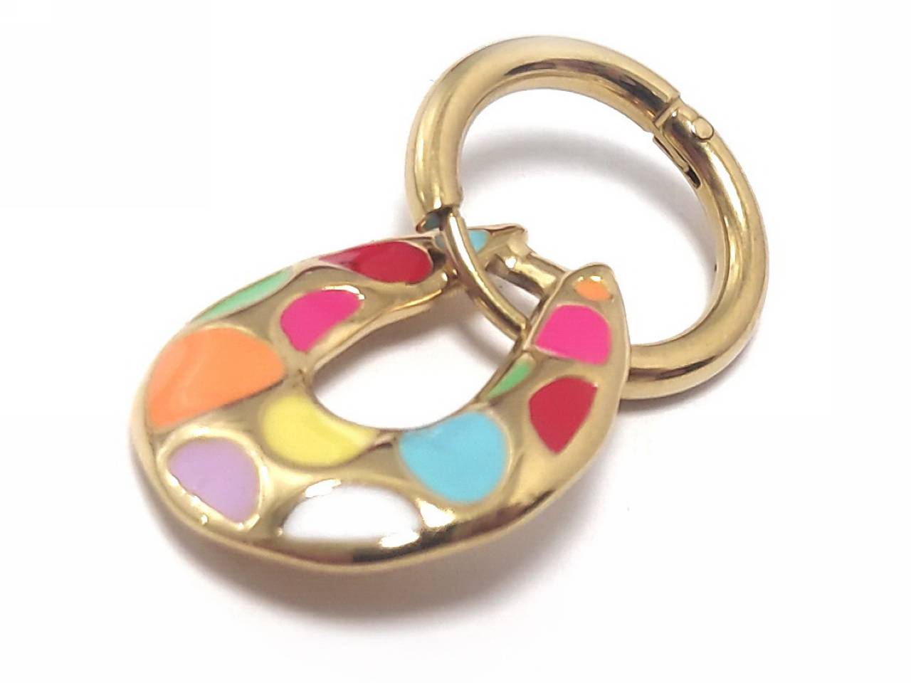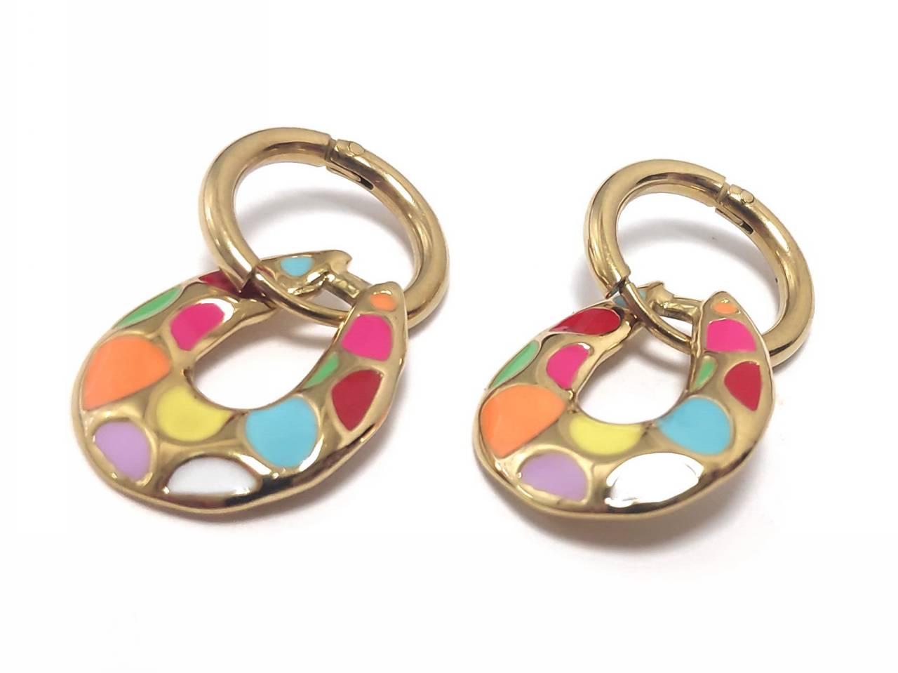 Σκουλαρίκια Ατσάλι 316L, κρίκος με πολύχρωμα σμάλτο σε χρώμα Χρυσαφί, Διάμετρος 1,5cm