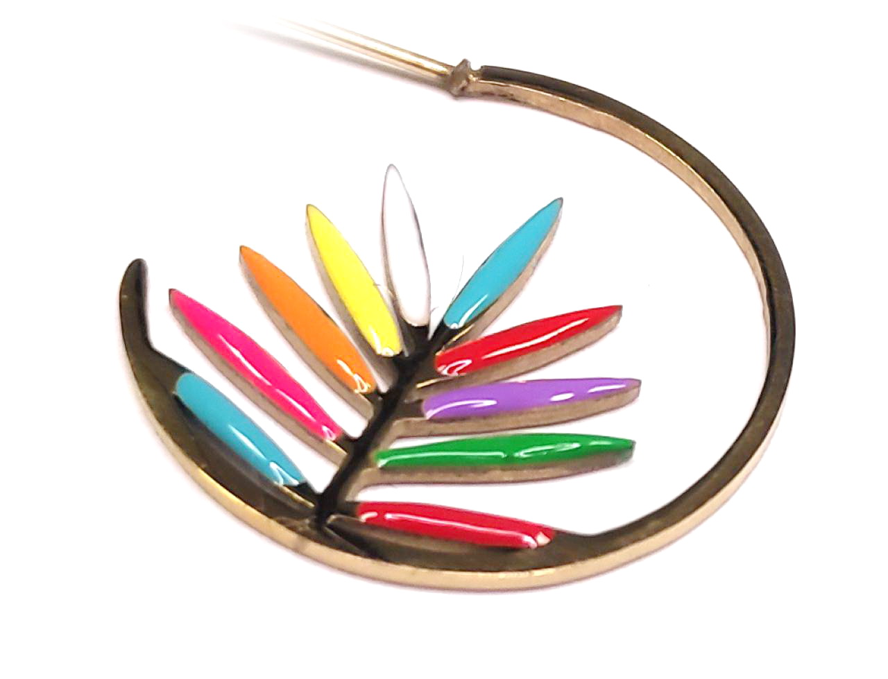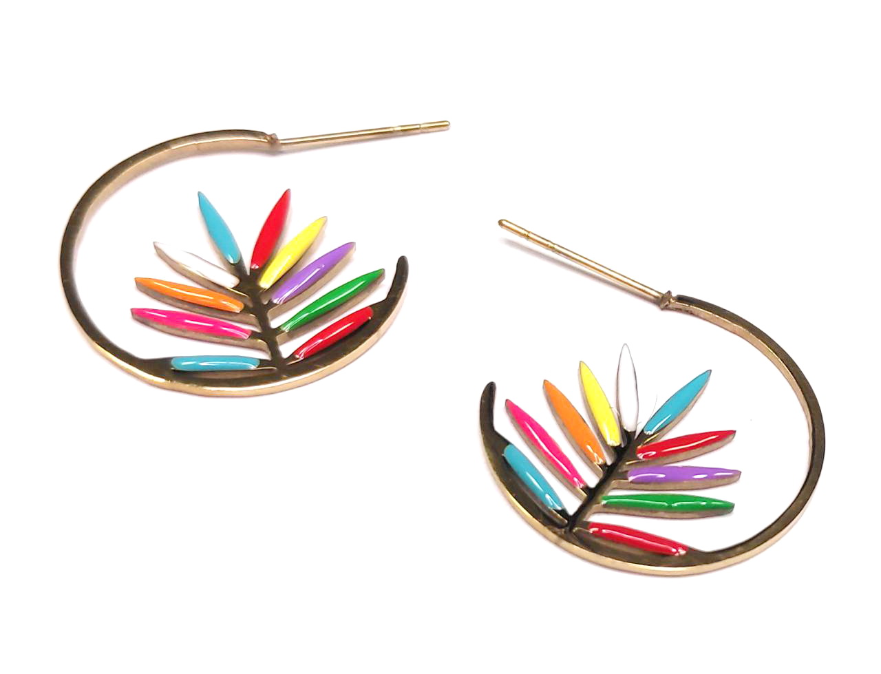 Σκουλαρίκια Ατσάλι 316L, κρίκος με πολύχρωμες πέτρες με σμάλτο σε χρώμα Χρυσαφί, Διάμετρος 2cm