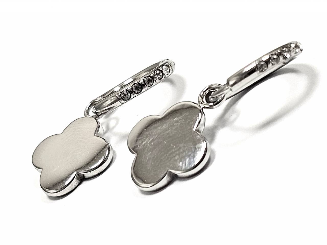 Σκουλαρίκια Ατσάλι 316L, κρίκος με στρας και σταυρός σε χρώμα Ασημί