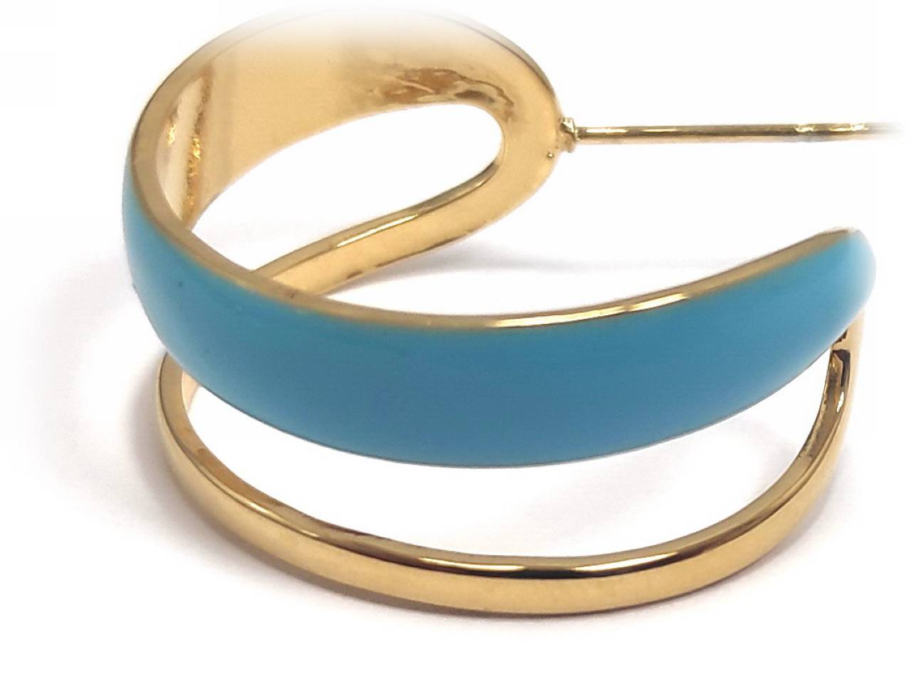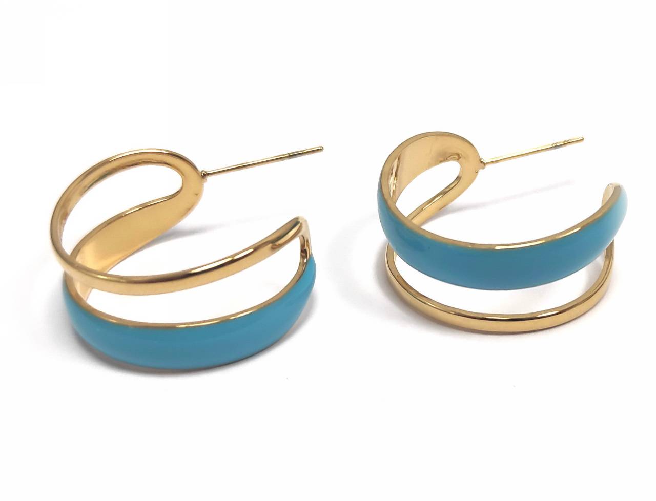 Σκουλαρίκια Ατσάλι 316L, κρίκος με τυρκουάζ σμάλτο σε χρώμα Χρυσαφί, Διάμετρος 2cm