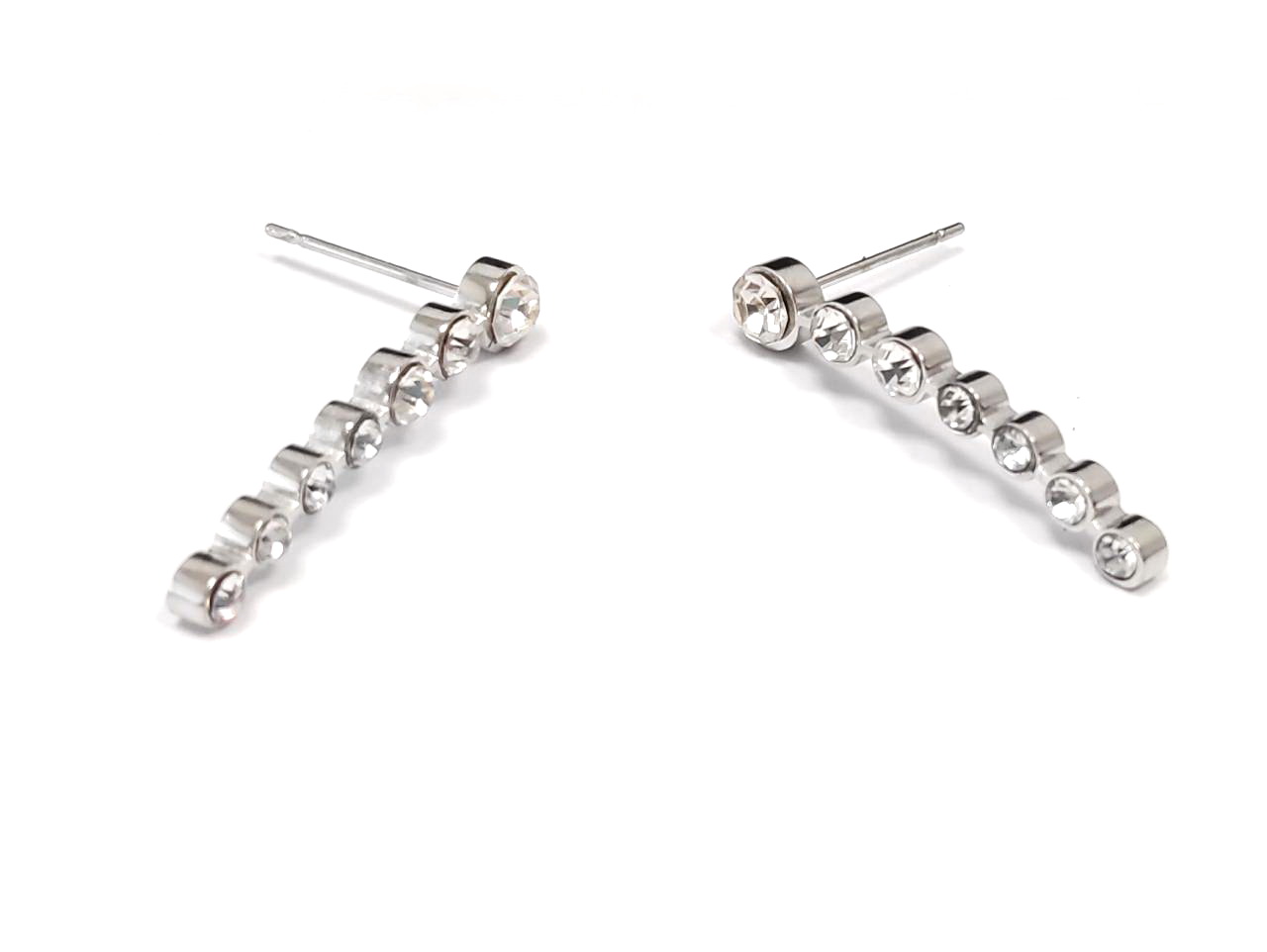 Σκουλαρίκια Ατσάλι 316L, cuff με στρας σε χρώμα Ασημί