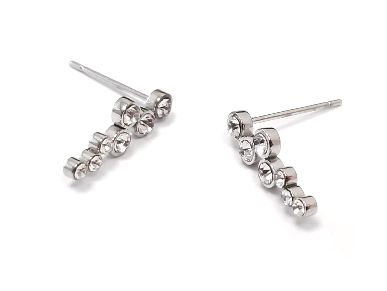 Σκουλαρίκια Ατσάλι 316L, cuff με στρας σε χρώμα Ασημί