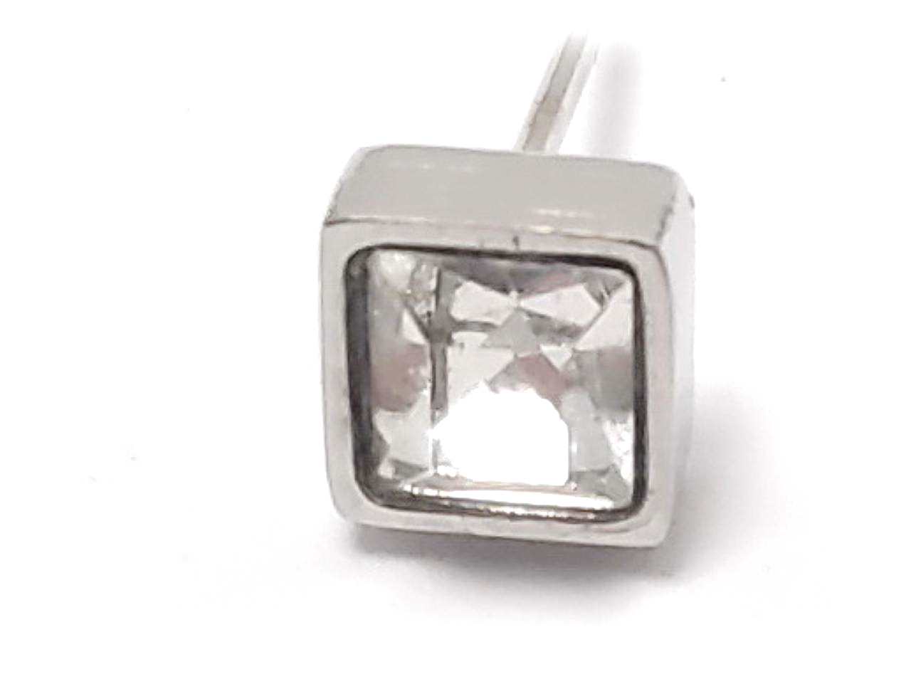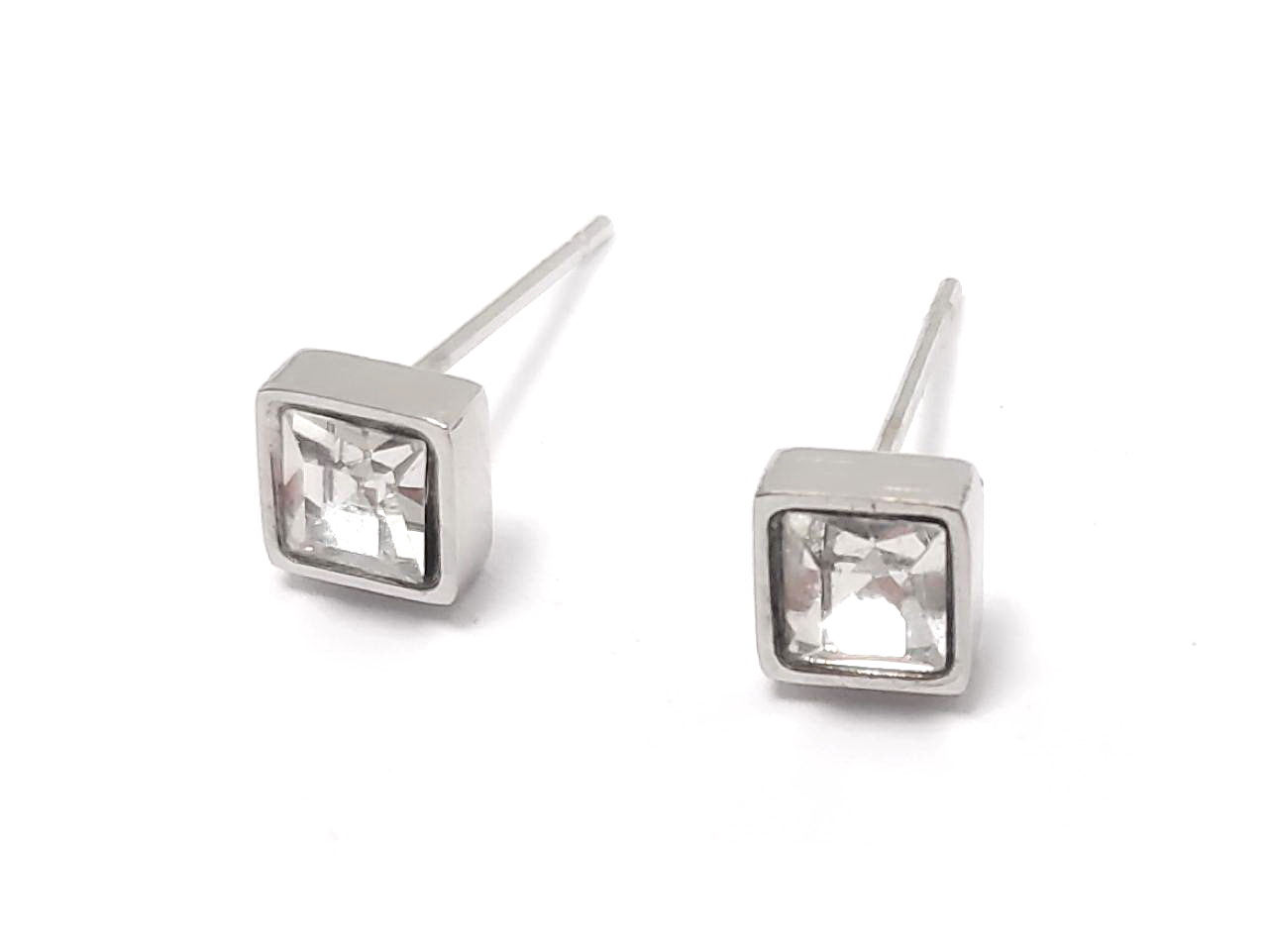 Σκουλαρίκια Ατσάλι 316L, καρφωτό με τετράγωνο στρας σε χρώμα Ασημί, Μήκος 3mm, Πλάτος 3mm