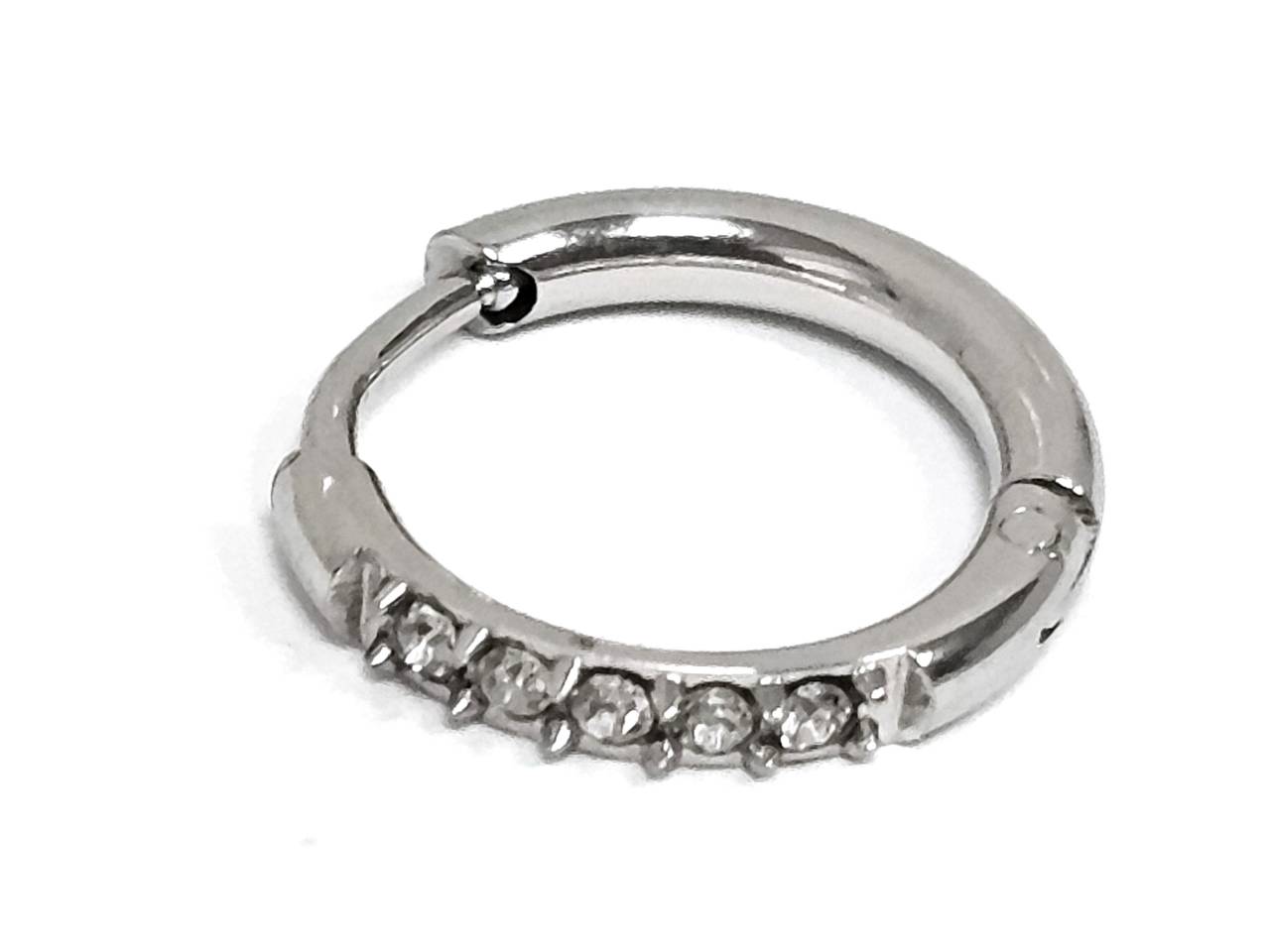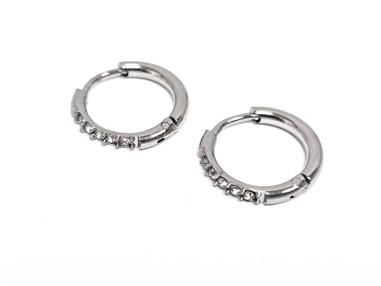 Σκουλαρίκια Ατσάλι Ατσάλι 316L, κρίκος με στρας σε χρώμα Ασημί