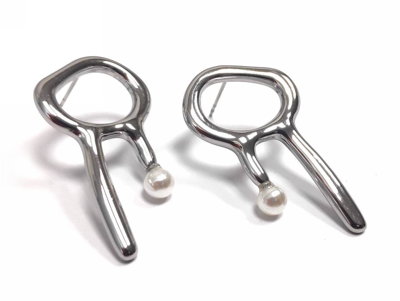 Σκουλαρίκια Ατσάλι 316L, με πέρλα σε χρώμα Ασημί