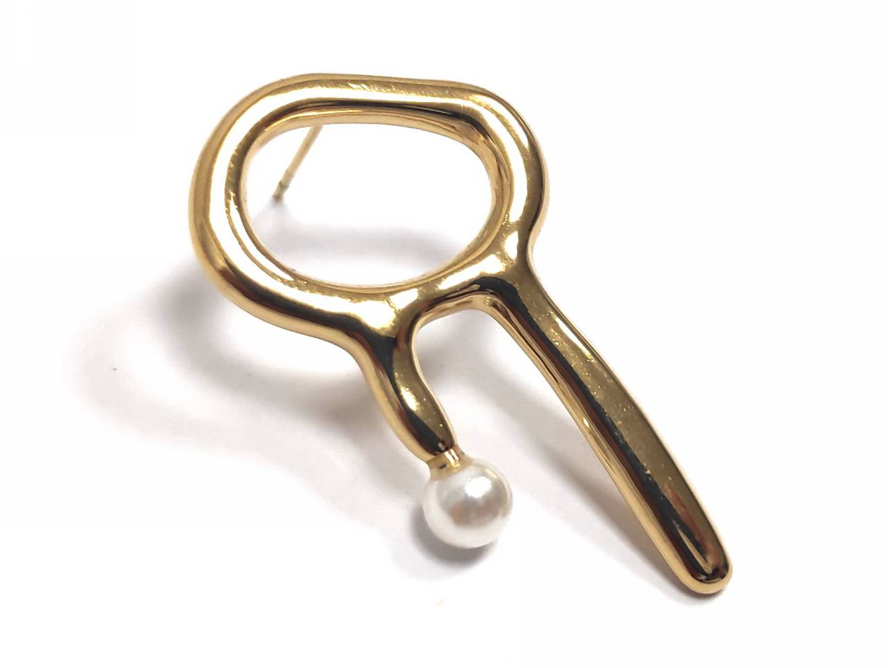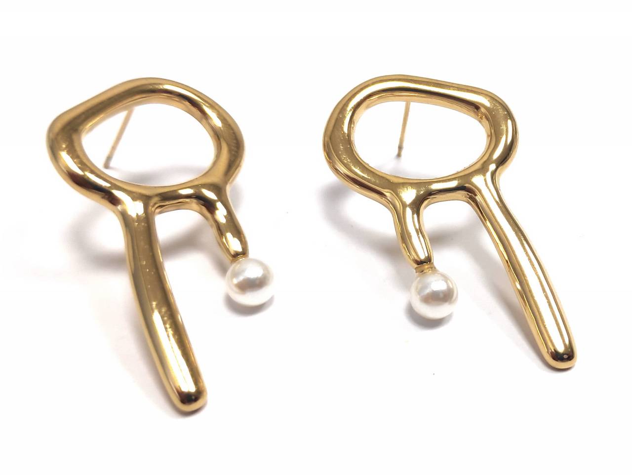 Σκουλαρίκια Ατσάλι 316L, με πέρλα σε χρώμα Χρυσαφί