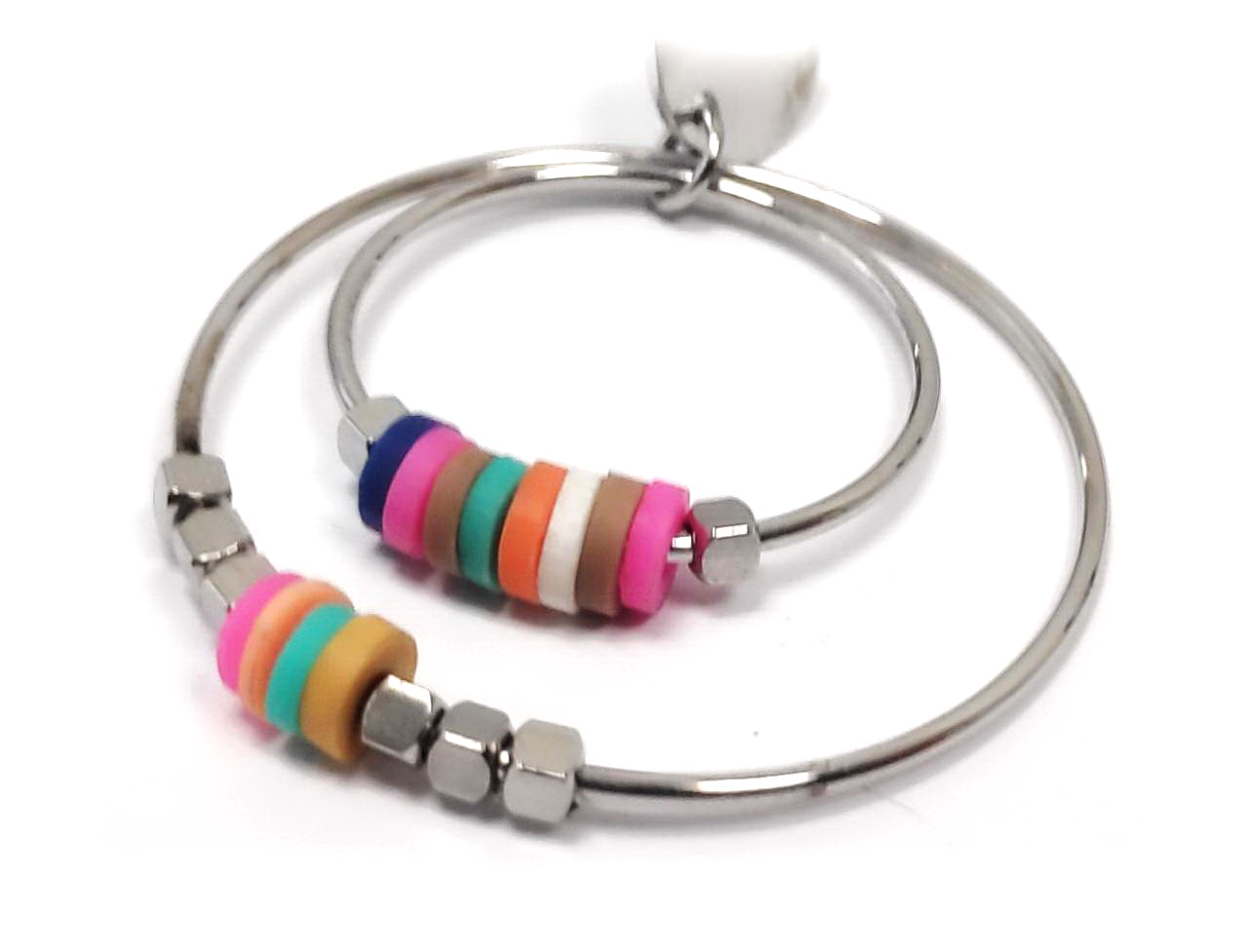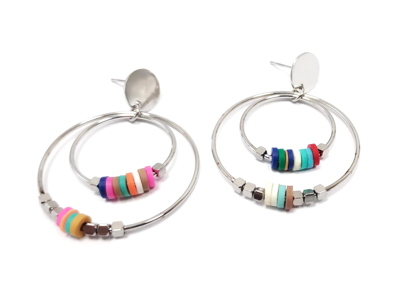 Σκουλαρίκια Πέτρα 316L, κρίκος και πολύχρωμες χάντρες σε χρώμα Ασημί, Διάμετρος 3cm