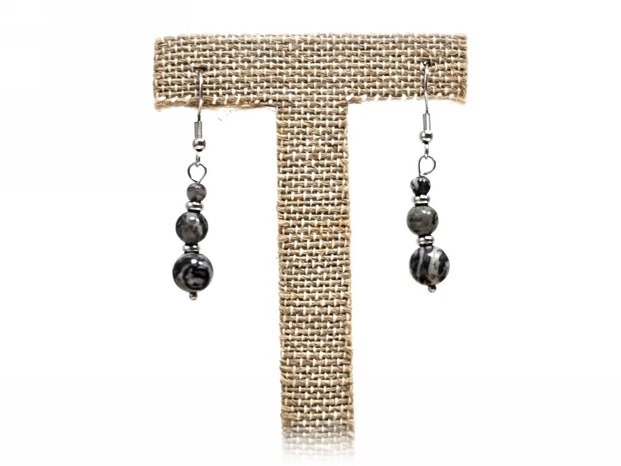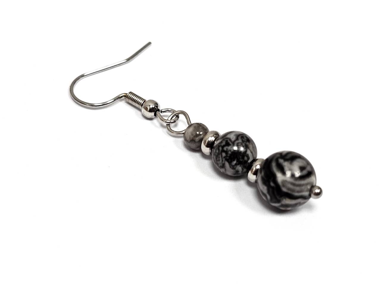 Σκουλαρίκια Πέτρα ημιπολύτιμη 4-6-8mm, ατσάλι σε χρώμα Ασημί