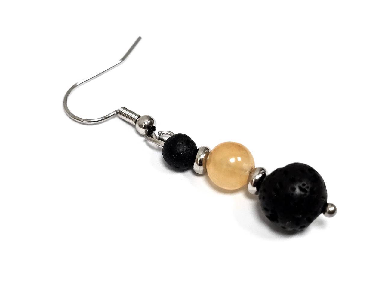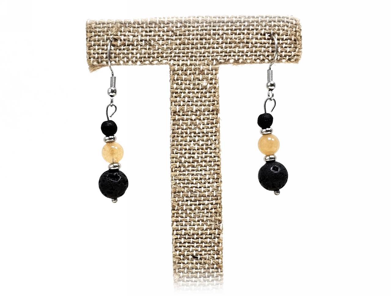 Σκουλαρίκια Πέτρα ημιπολύτιμη και λάβα, ατσάλι σε χρώμα Ασημί