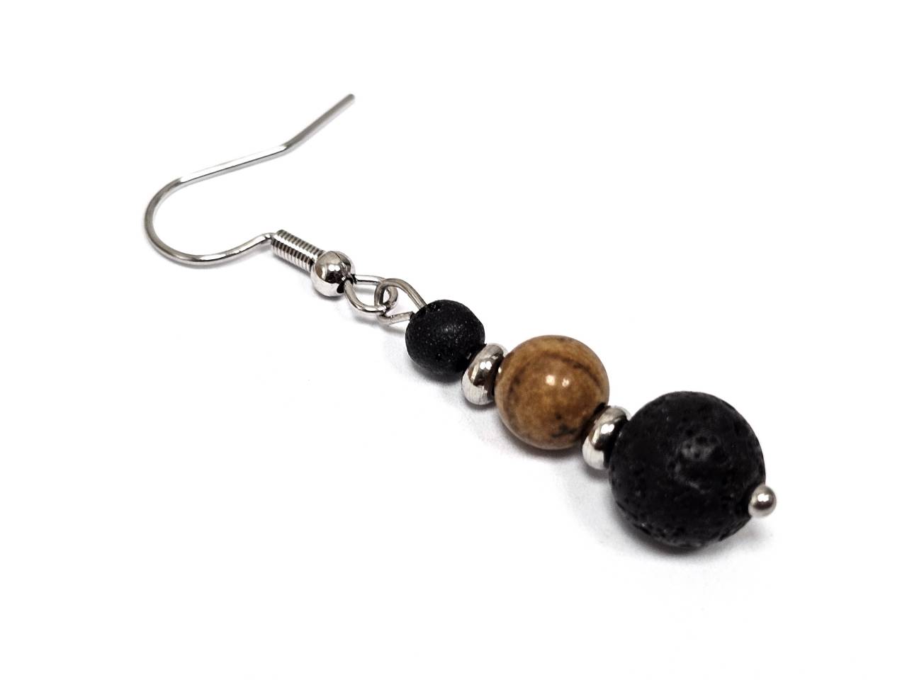 Σκουλαρίκια Πέτρα ημιπολύτιμη και λάβα, ατσάλι σε χρώμα Ασημί