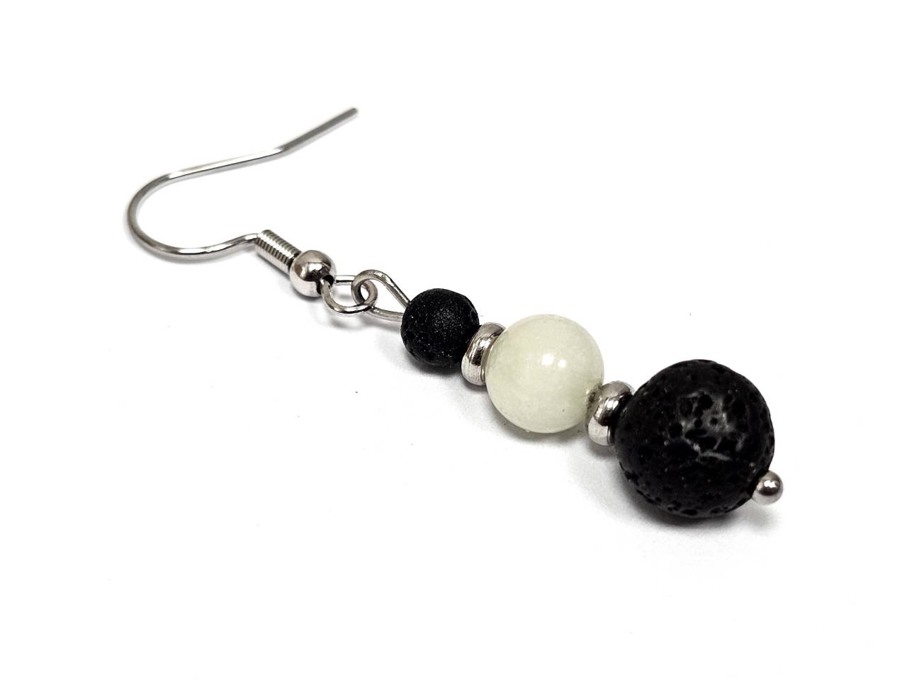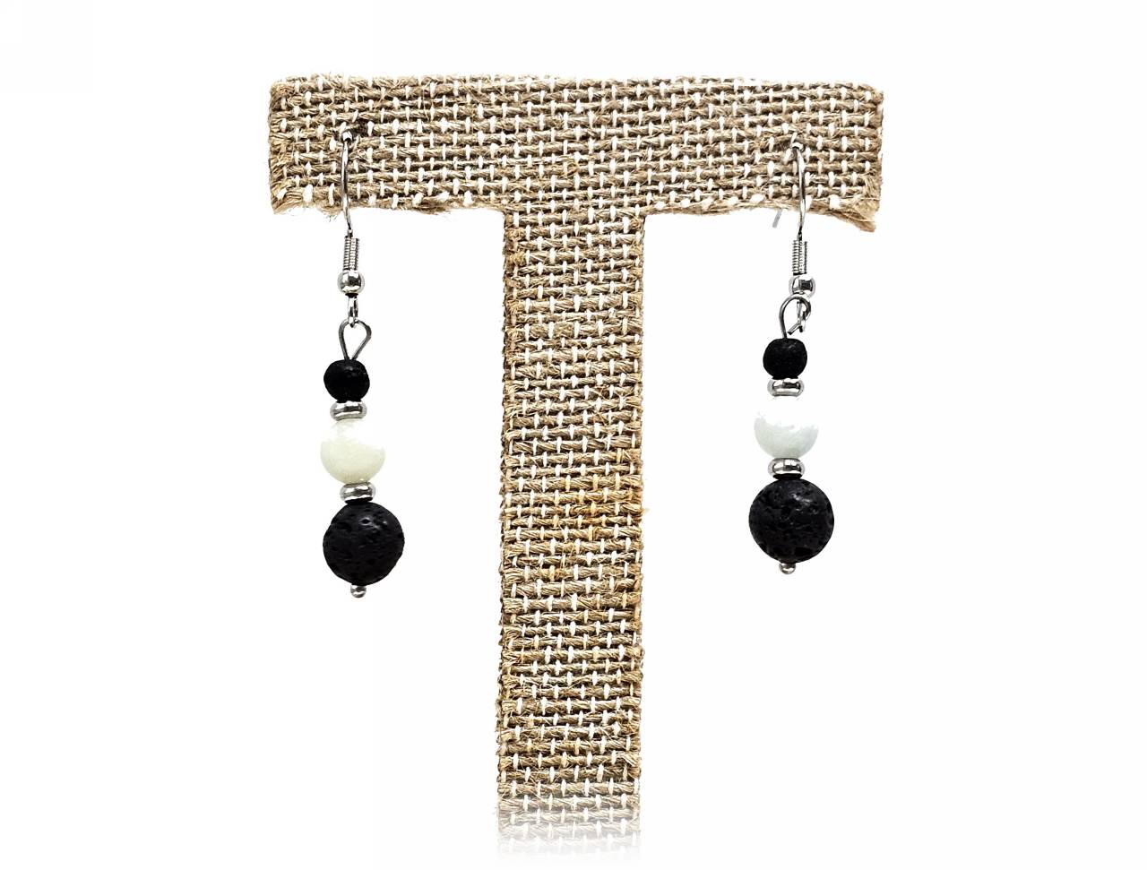 Σκουλαρίκια Πέτρα ημιπολύτιμη και λάβα, ατσάλι σε χρώμα Ασημί