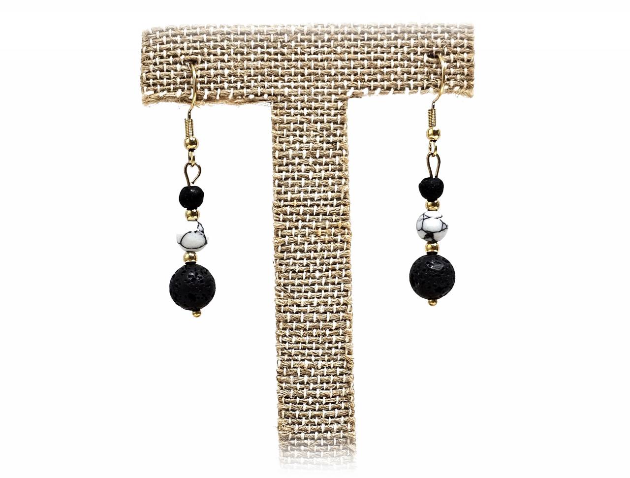 Σκουλαρίκια Πέτρα ημιπολύτιμη και λάβα, ατσάλι σε χρώμα Χρυσαφί