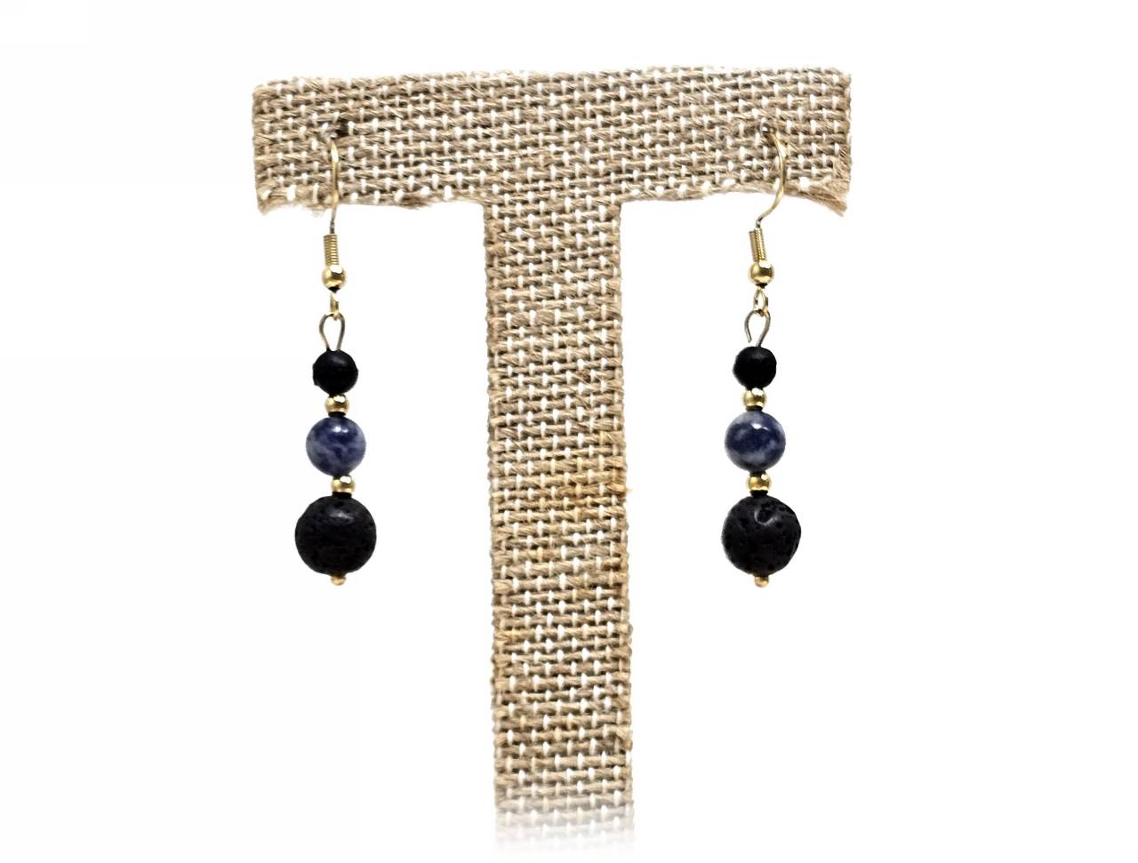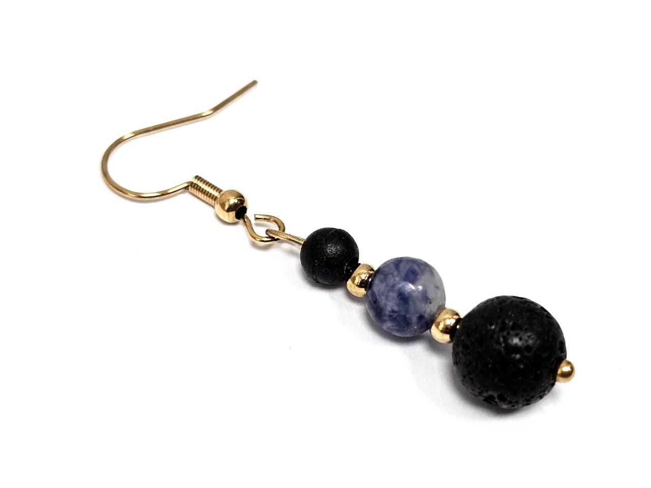Σκουλαρίκια Πέτρα ημιπολύτιμη και λάβα, ατσάλι σε χρώμα Χρυσαφί