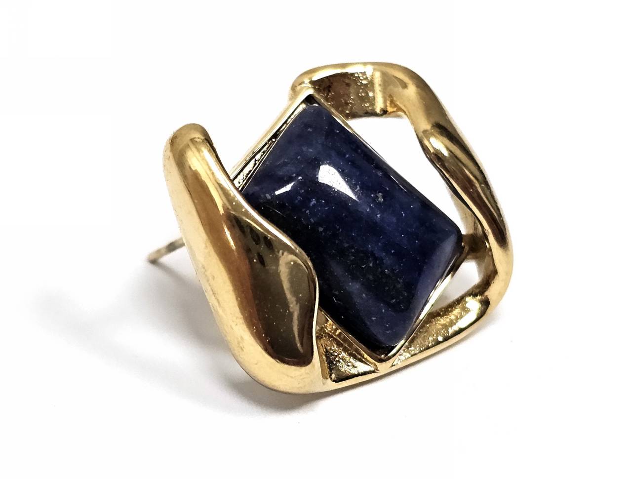 Σκουλαρίκια Πέτρα 316L, με Lapis σε χρώμα Χρυσαφί