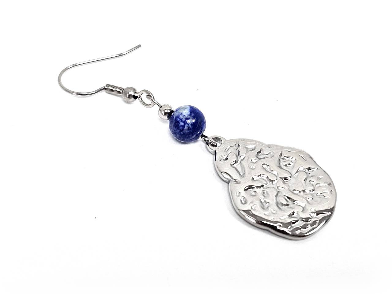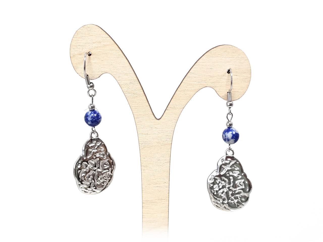 Σκουλαρίκια Πέτρα Ατσάλι 316L, με Lapis σε χρώμα Ασημί