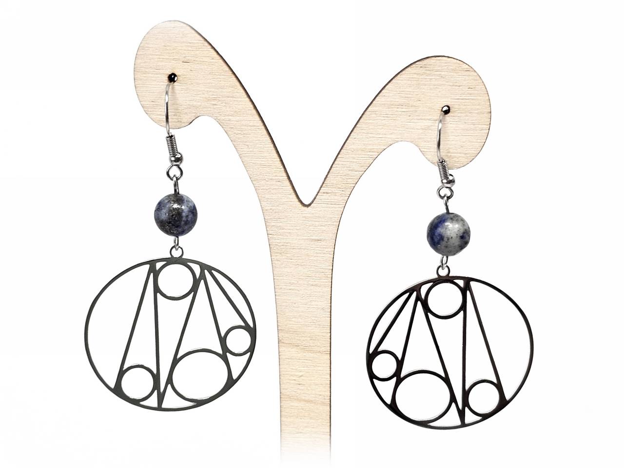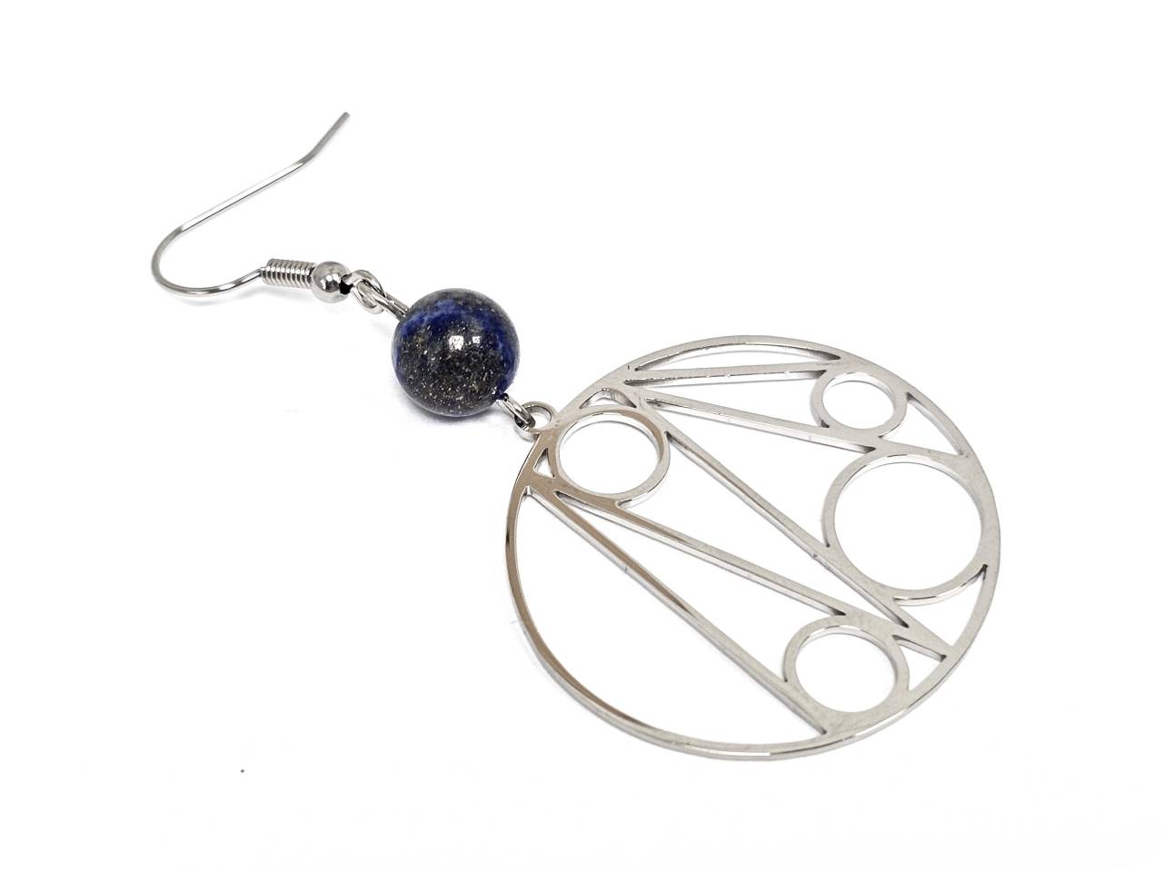 Σκουλαρίκια Πέτρα Ατσάλι 316L, με Lapis σε χρώμα Ασημί