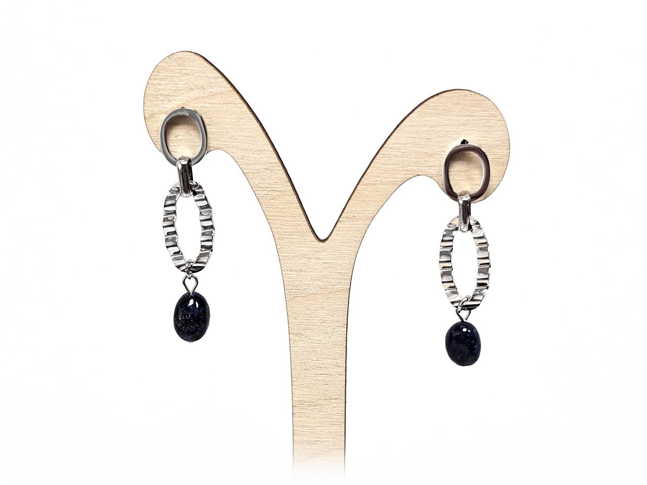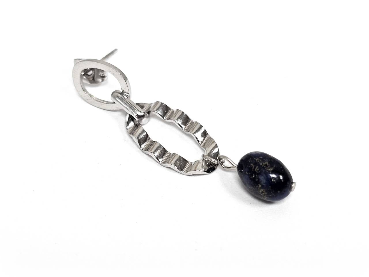 Σκουλαρίκια Πέτρα Ατσάλι 316L, με Lapis σε χρώμα Ασημί