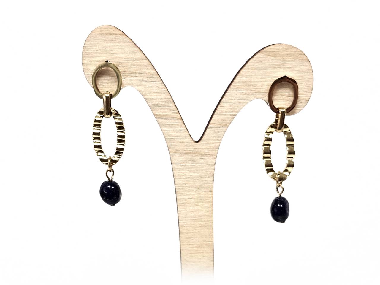 Σκουλαρίκια Πέτρα Ατσάλι 316L, με Lapis σε χρώμα Χρυσαφί