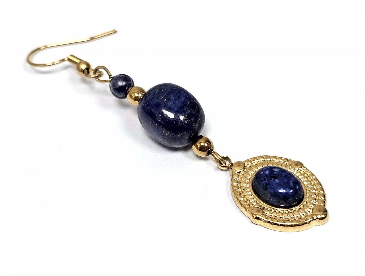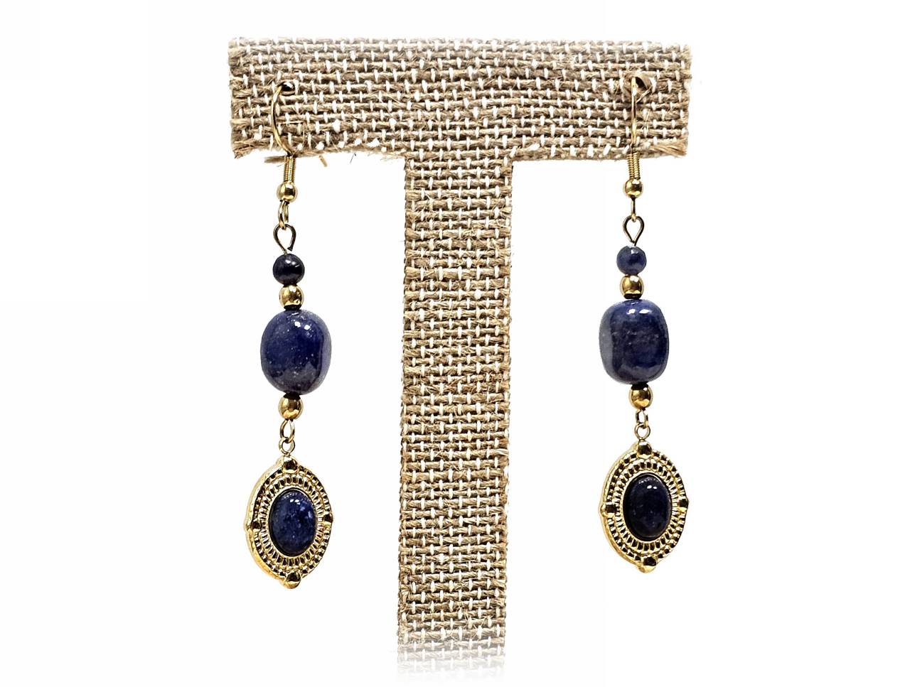 Σκουλαρίκια Πέτρα με Lapis σε χρώμα Χρυσαφί