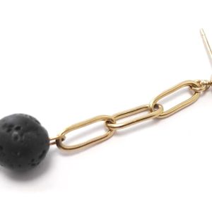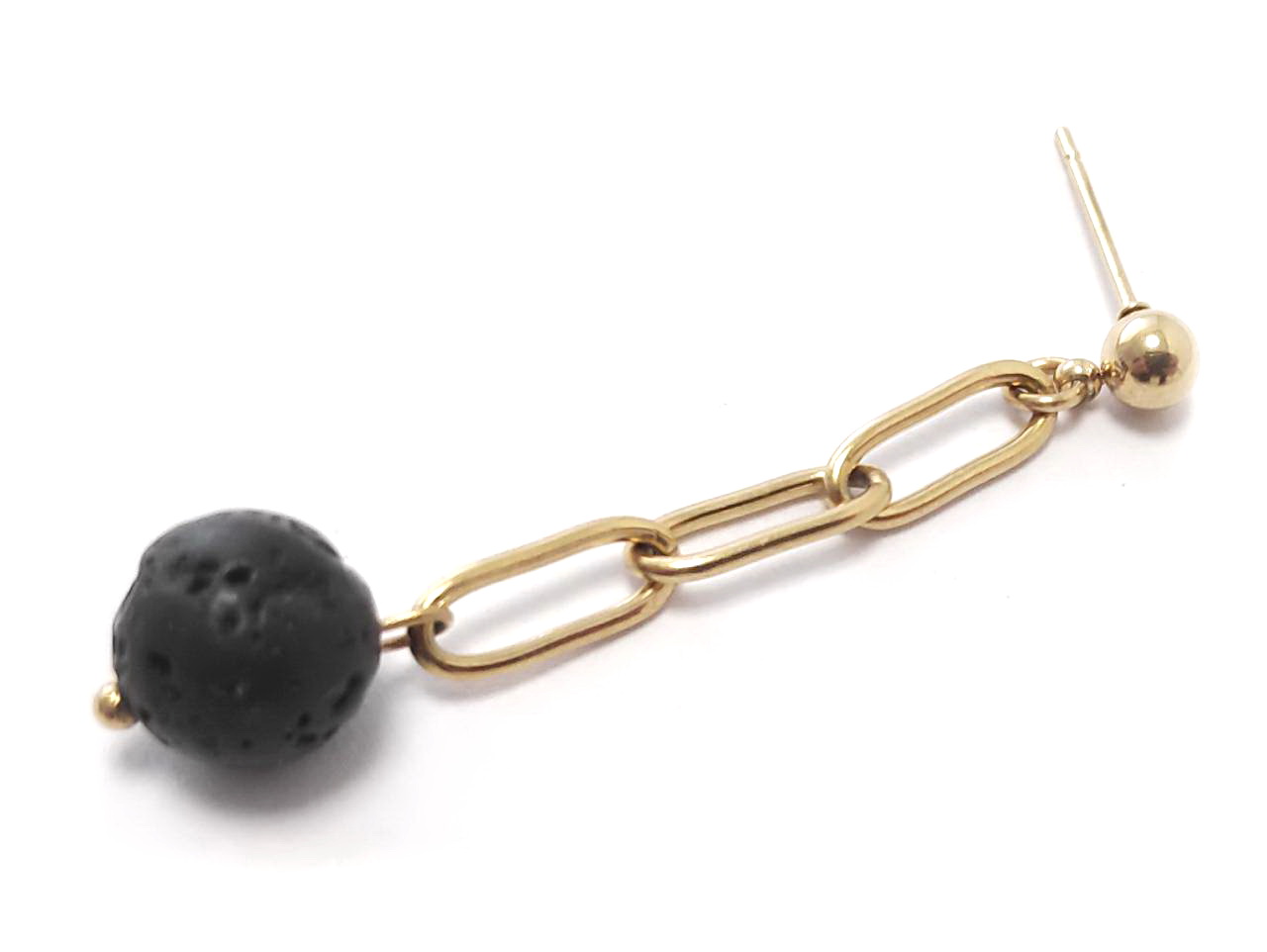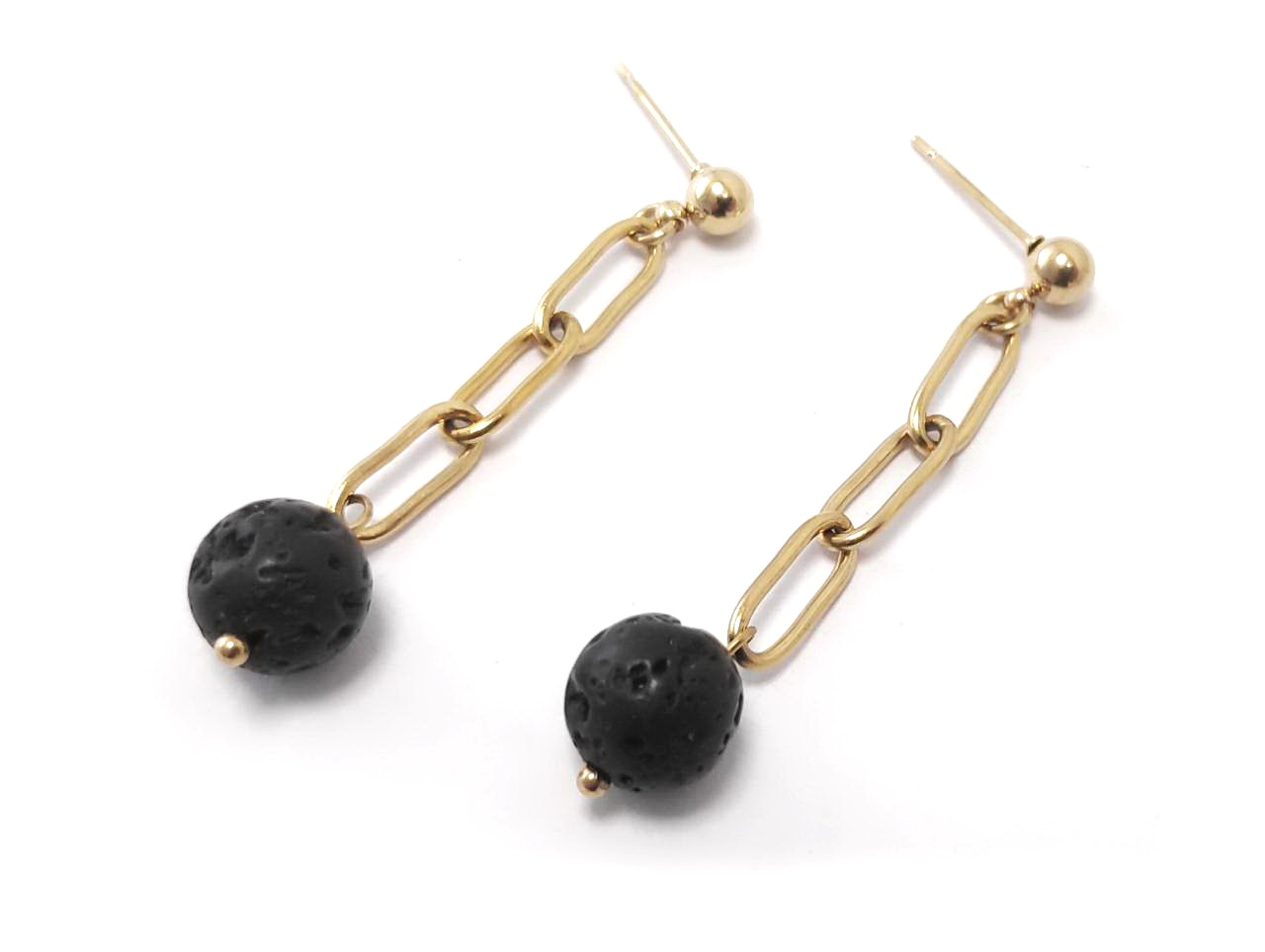 Σκουλαρίκια Πέτρα 316L, αλυσίδα με λάβα σε χρώμα Χρυσαφί