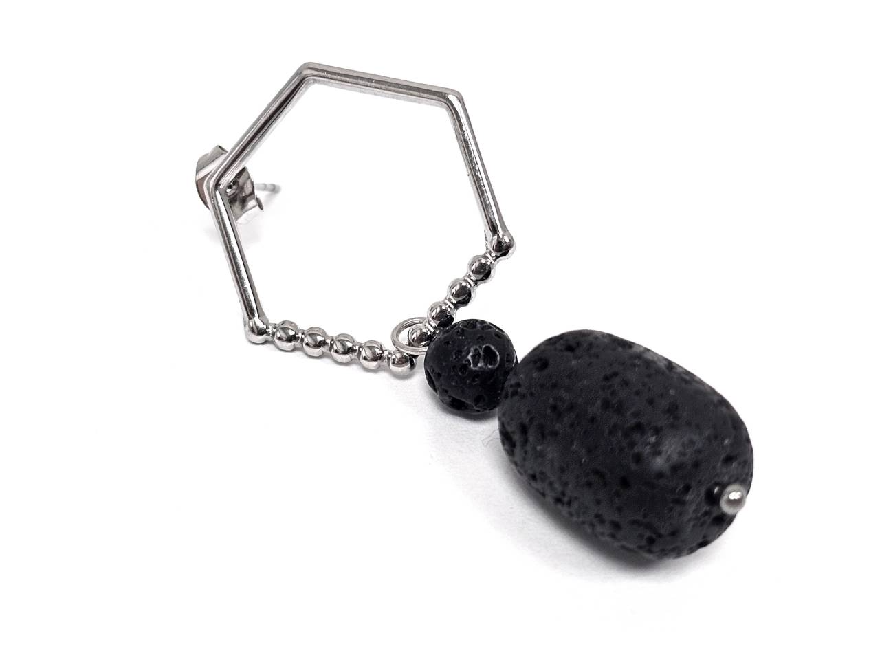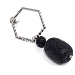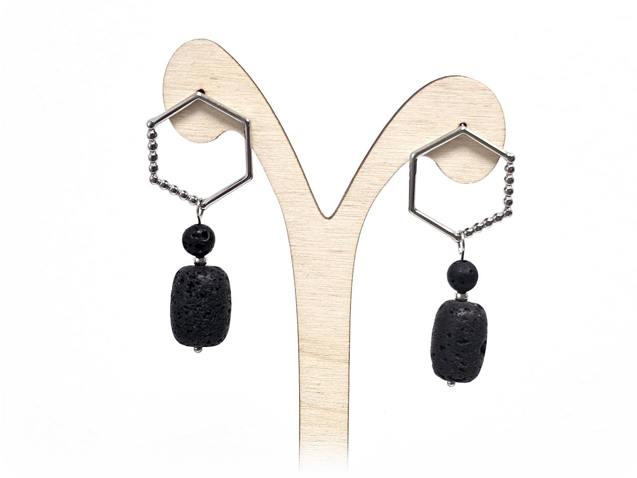 Σκουλαρίκια Πέτρα Ατσάλι 316L, με λάβα σε χρώμα Ασημί