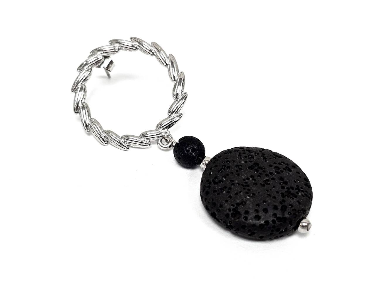 Σκουλαρίκια Πέτρα Ατσάλι 316L, με λάβα σε χρώμα Ασημί