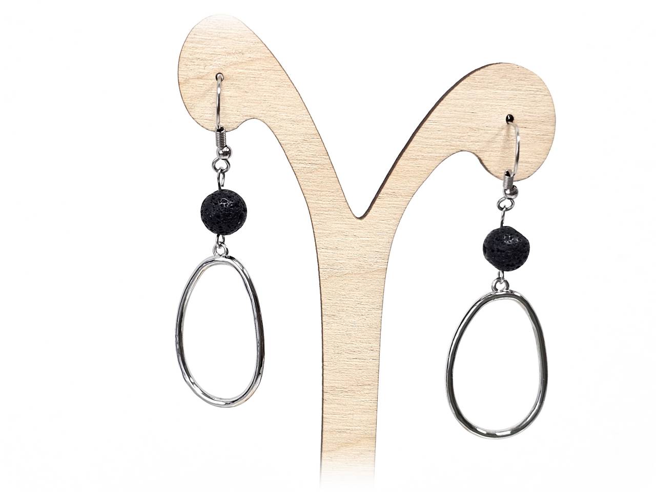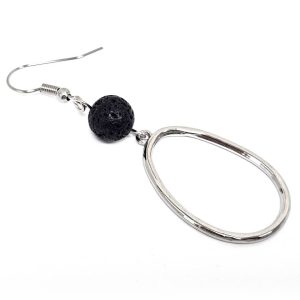Σκουλαρίκια Πέτρα Ατσάλι 316L, με λάβα σε χρώμα Ασημί