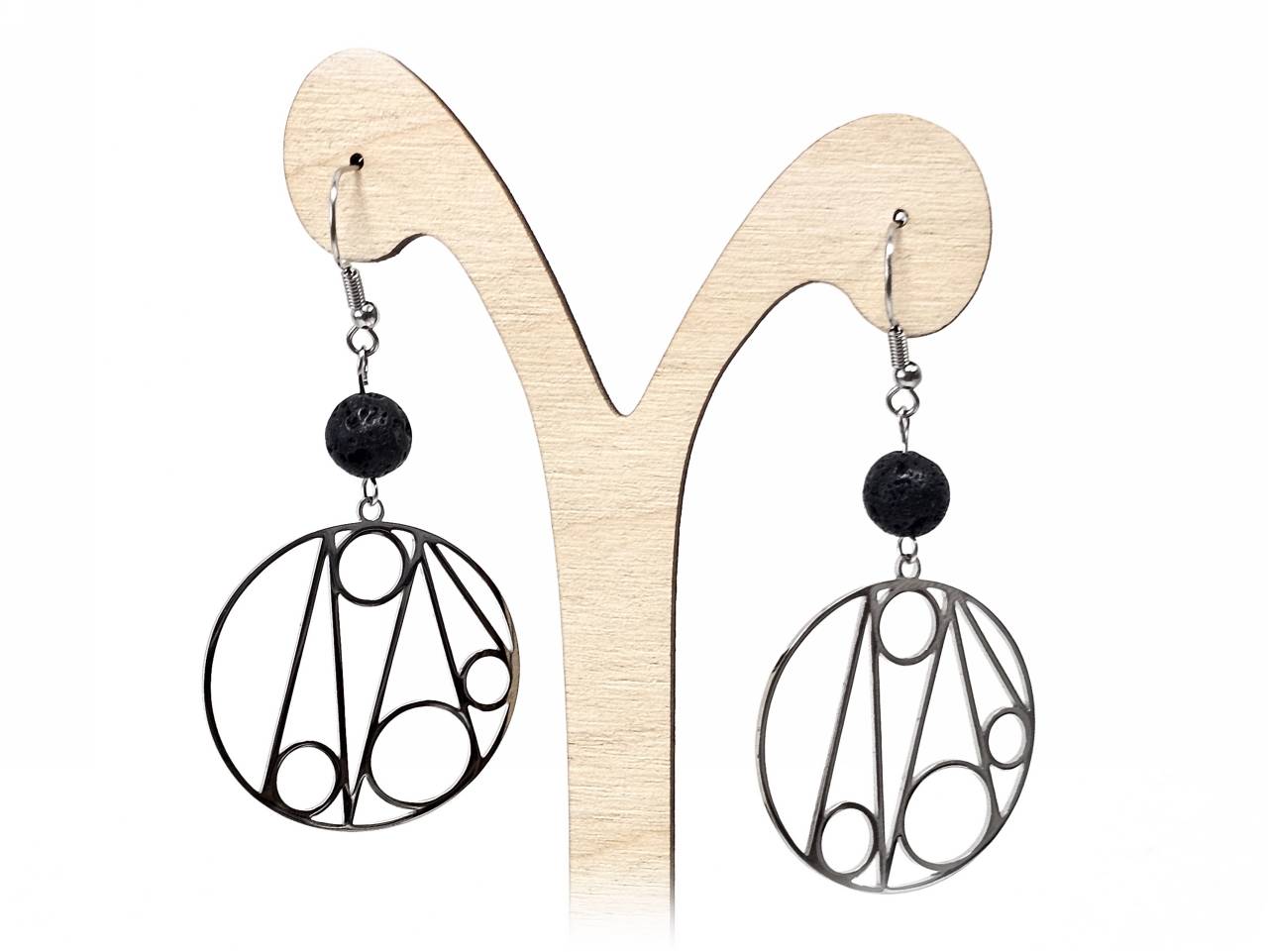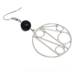 Σκουλαρίκια Πέτρα Ατσάλι 316L, με λάβα σε χρώμα Ασημί