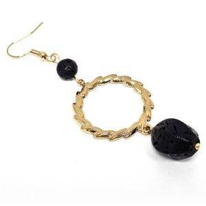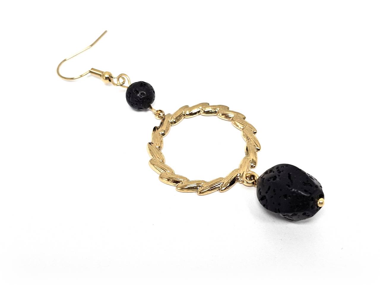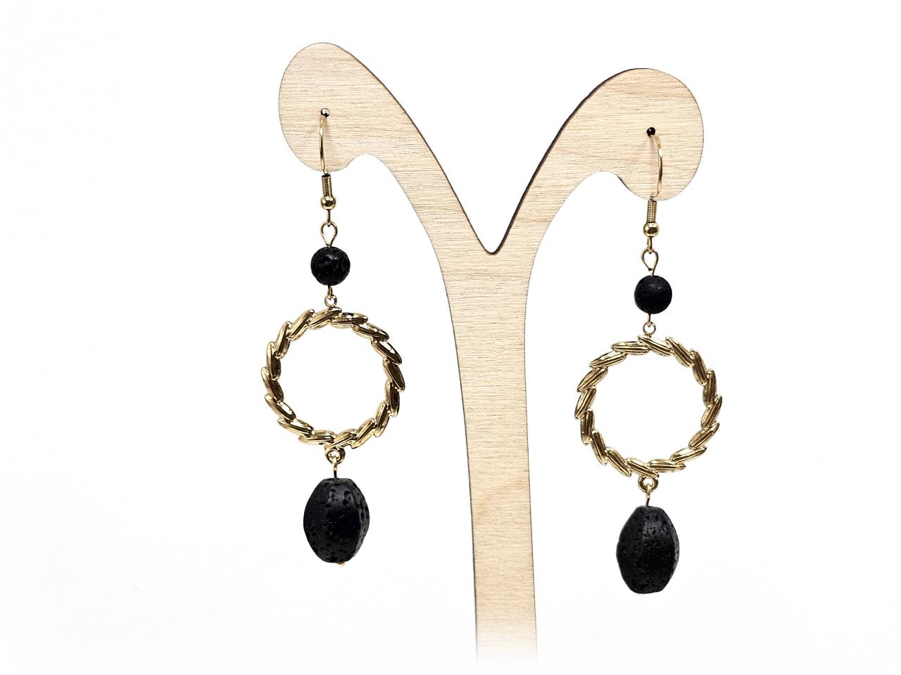 Σκουλαρίκια Πέτρα Ατσάλι 316L, με λάβα σε χρώμα Χρυσαφί