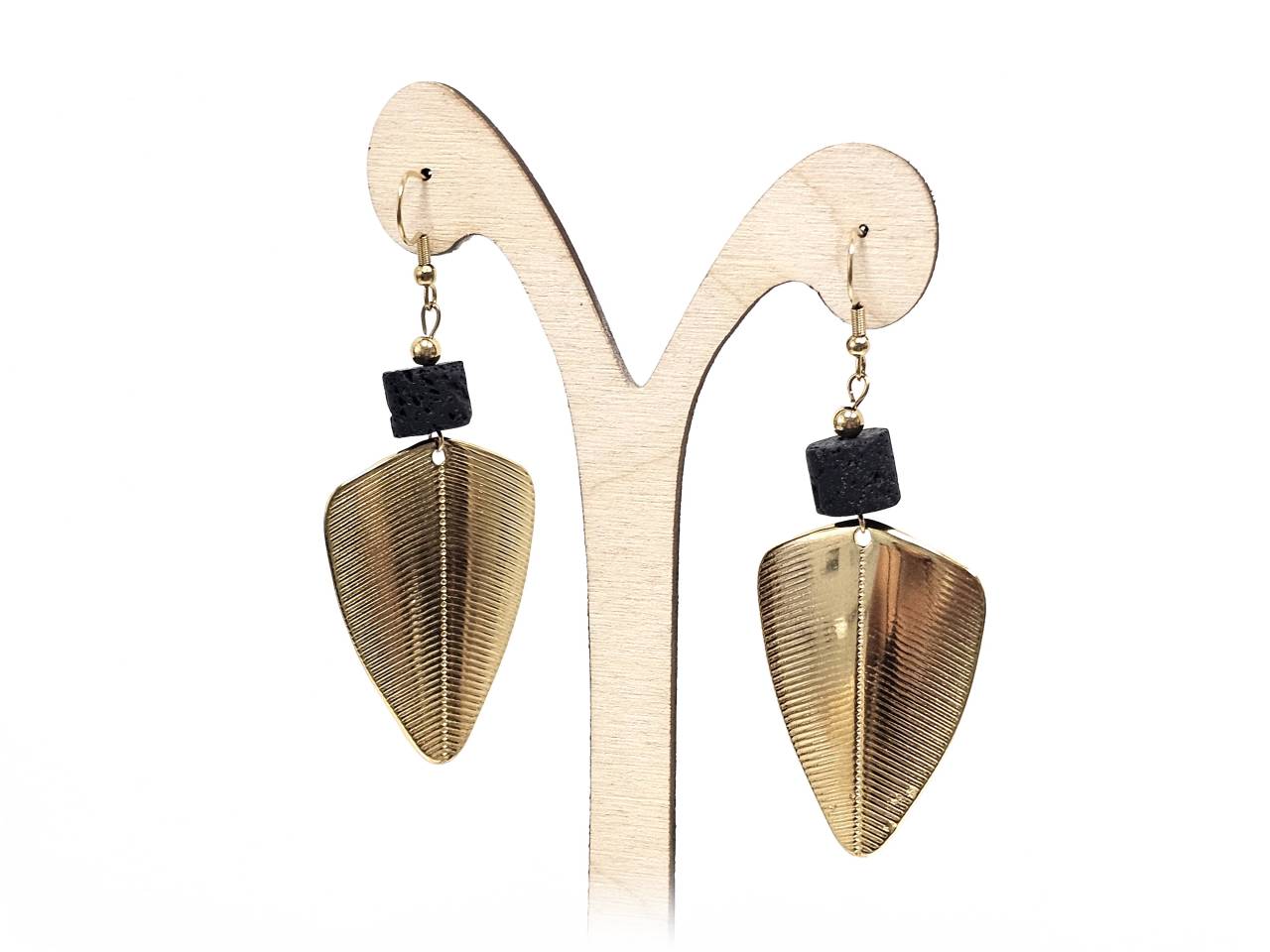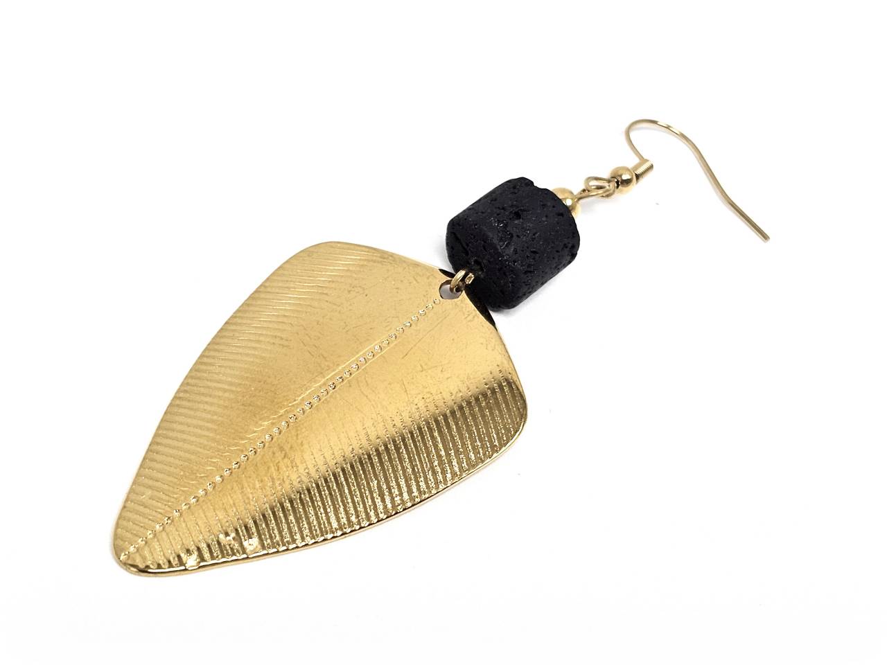Σκουλαρίκια Πέτρα Ατσάλι 316L, με λάβα σε χρώμα Χρυσαφί