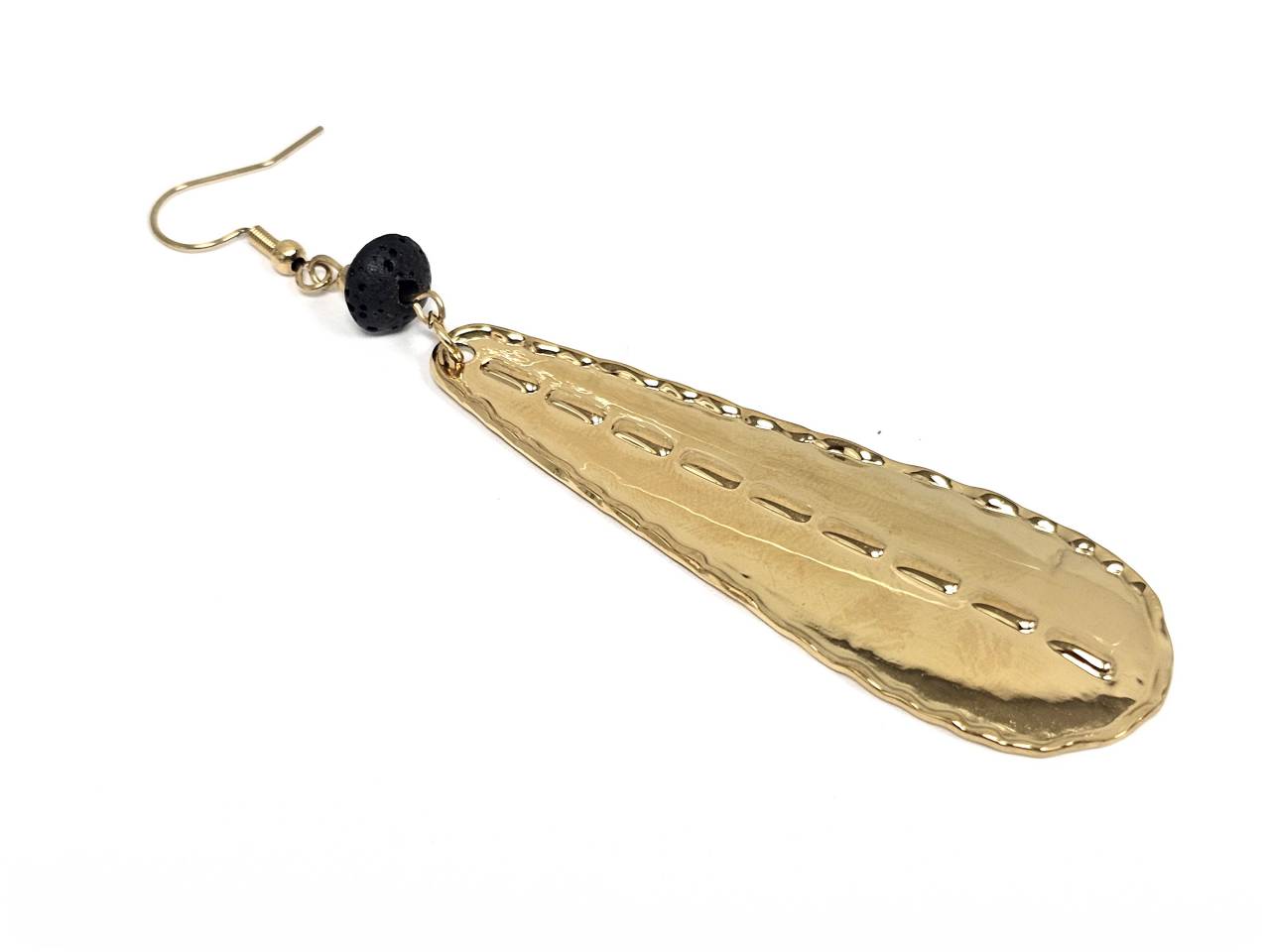 Σκουλαρίκια Πέτρα Ατσάλι 316L, με λάβα σε χρώμα Χρυσαφί